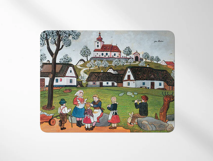 Prostírání z kolekce Josef Lada vnese do vaší jídelny kouzelnou atmosféru. Rozměry: 35x45 cm Materiál: PVC Frontlit - měkký banner s plošnou hmotností 510 g/m2. Matný hladký povrch. Spodní strana...