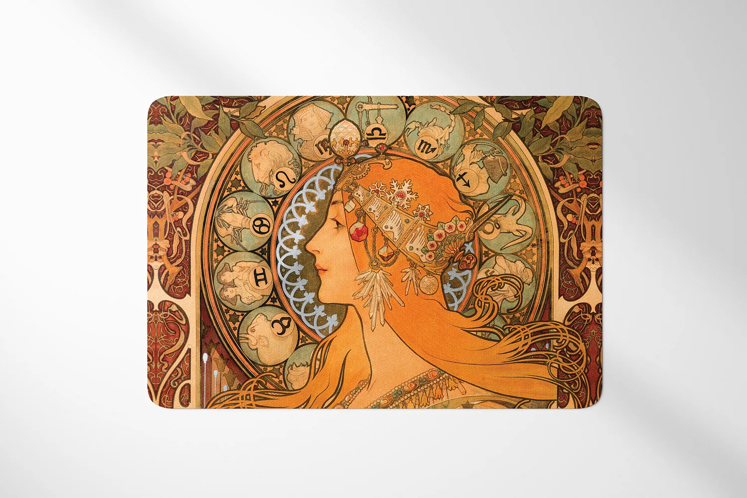 Prostírání z kolekce Alfons Mucha stylově doplní každý interiér. Rozměry: 35x45 cm Materiál: PVC Frontlit - měkký banner s plošnou hmotností 510 g/m2. Matný hladký povrch. Spodní strana je bílá....