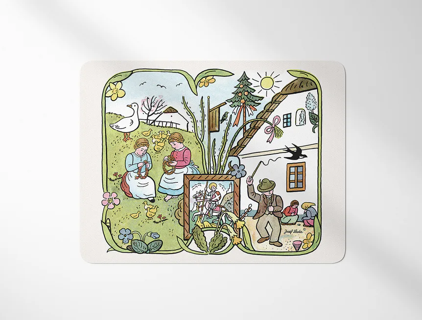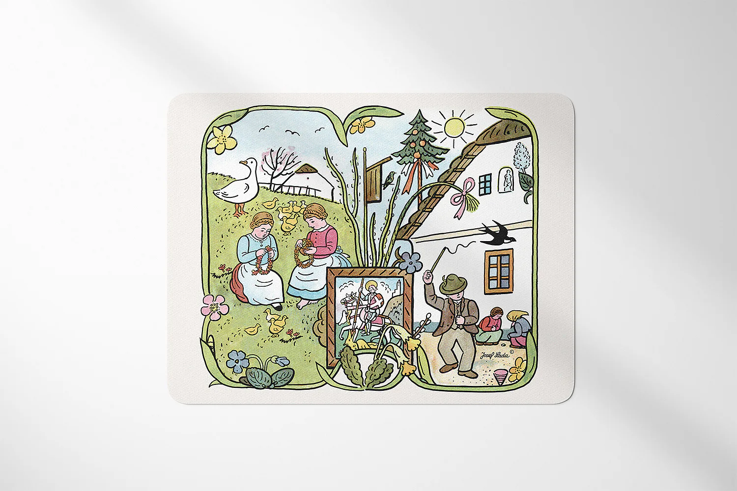 Prostírání z kolekce Josef Lada vnese do vaší jídelny kouzelnou atmosféru. Rozměry: 35x45 cm Materiál: PVC Frontlit - měkký banner s plošnou hmotností 510 g/m2. Matný hladký povrch. Spodní strana...