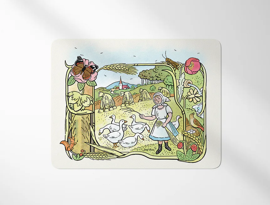 Prostírání z kolekce Josef Lada vnese do vaší jídelny kouzelnou atmosféru. Rozměry: 35x45 cm Materiál: PVC Frontlit - měkký banner s plošnou hmotností 510 g/m2. Matný hladký povrch. Spodní strana...