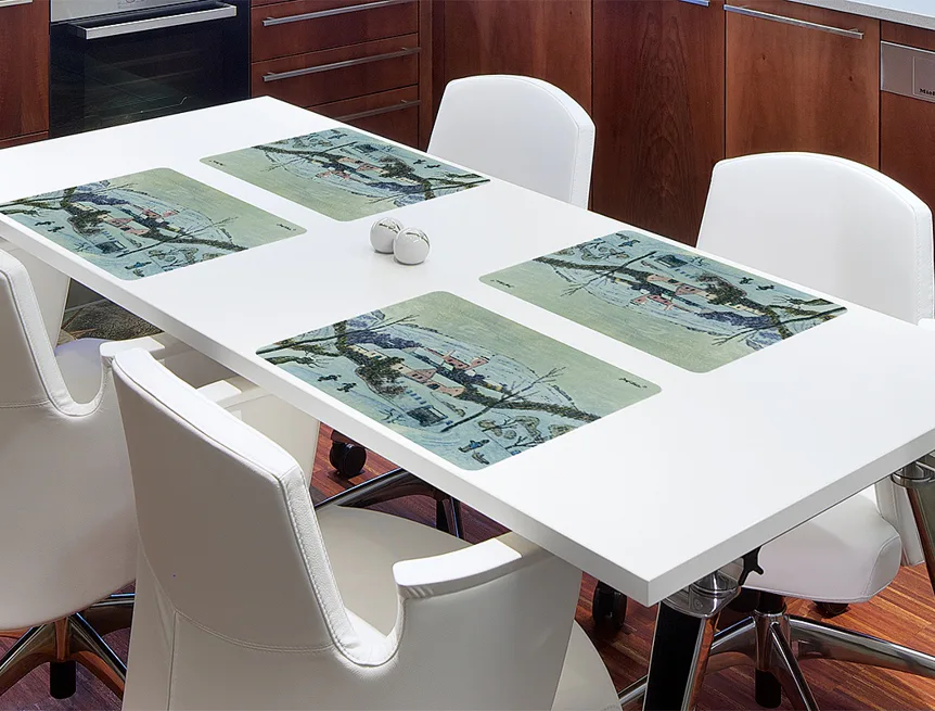 Prostírání z kolekce Josef Lada vnese do vaší jídelny kouzelnou atmosféru. Rozměry: 35x45 cm Materiál: PVC Frontlit - měkký banner s plošnou hmotností 510 g/m2. Matný hladký povrch. Spodní strana...