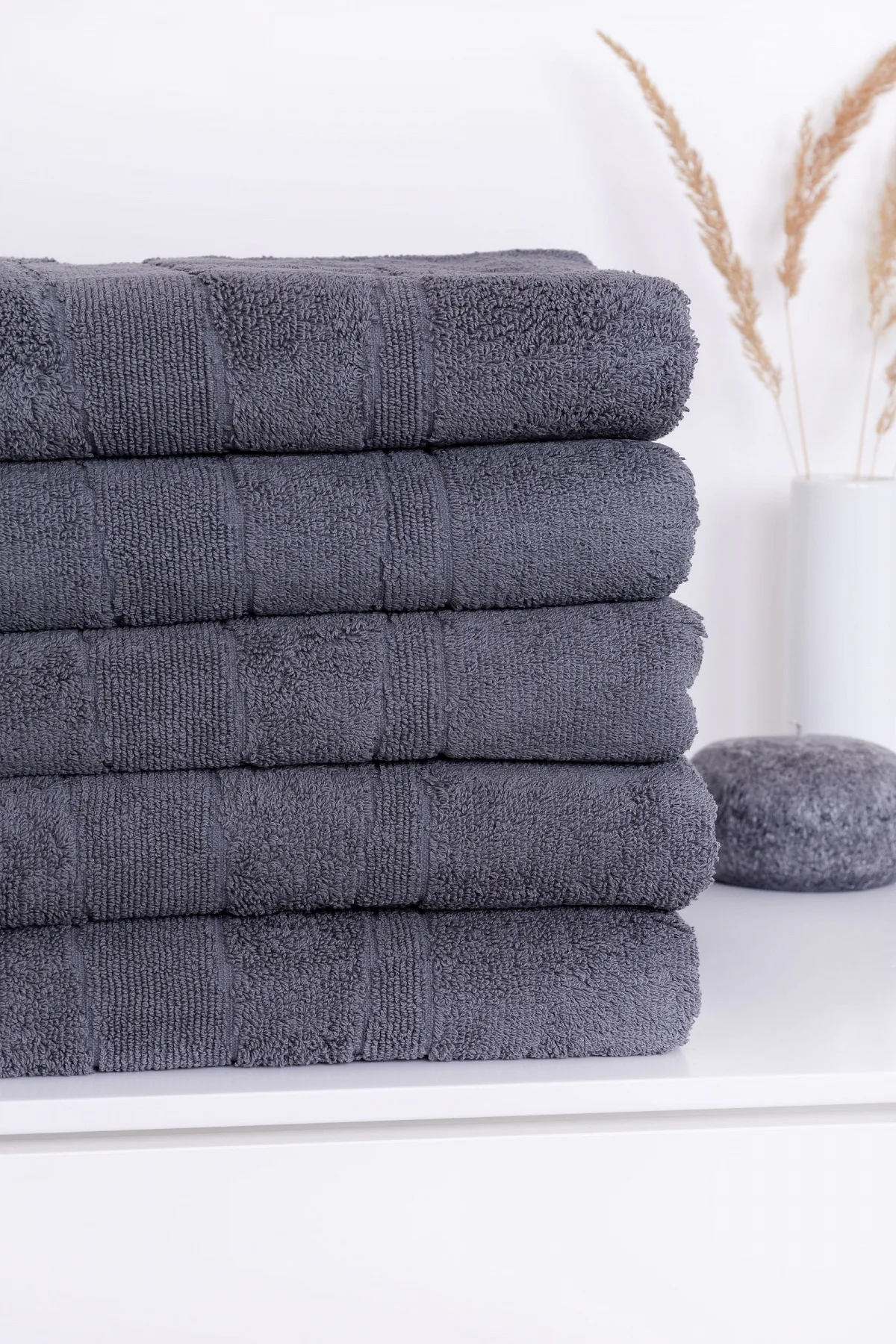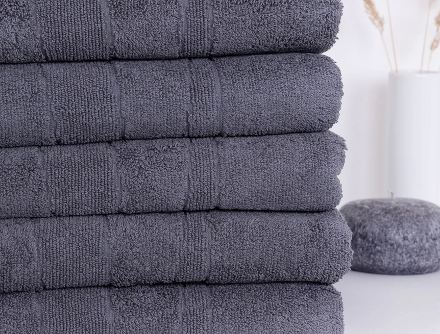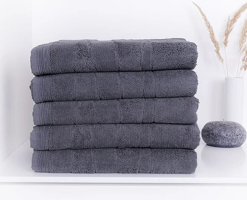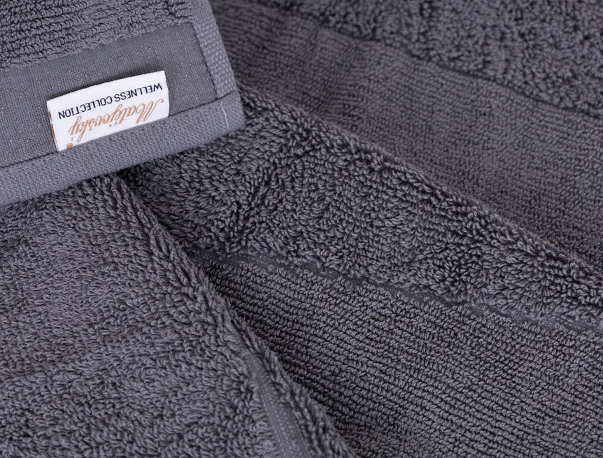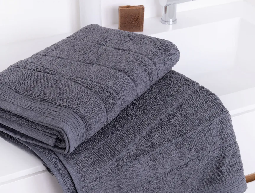 Our towels REY are known for its great absorbency and long life service thanks to the natural material and first class manufacturing. Weaving in grammage 600 g/m2  guarantees high comfort for user, which underlines the shades of gray and asymetric interwoven stripes.