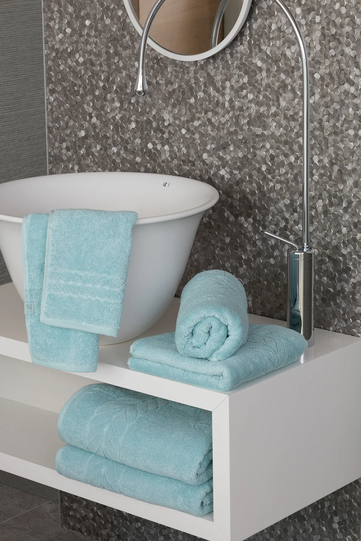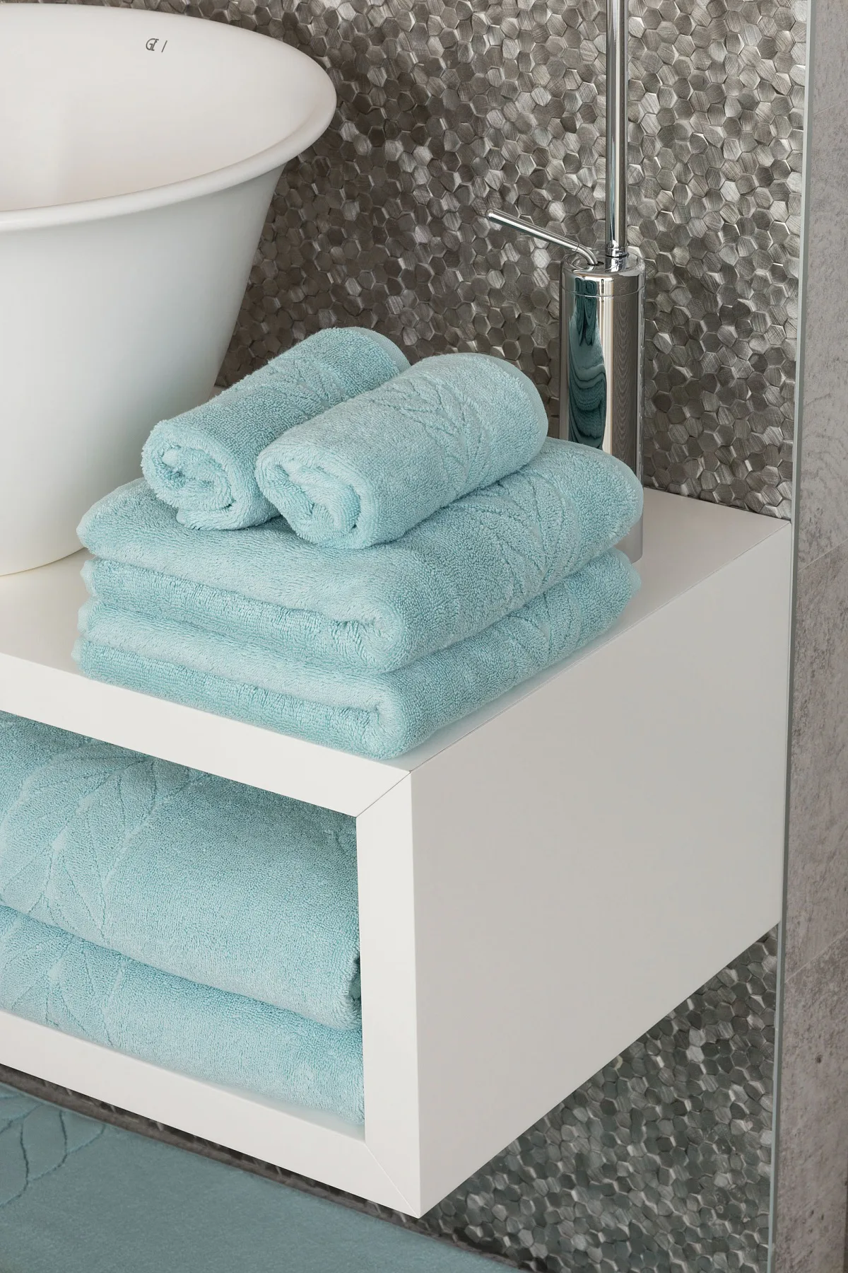 Tip: Barevné harmonie ve vaší koupelně můžete dosáhnout kombinací s bavlněnými koupelnovými předložkami Claris