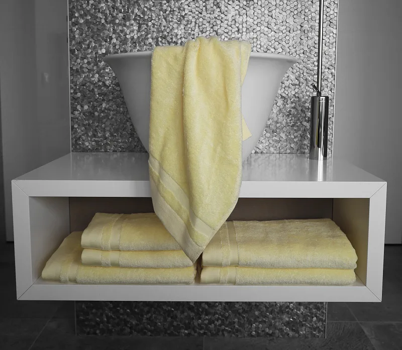 Složení: 70% lyocell (Tencel), 30% bavlnaGramáž: 530 g/m2Barva: pastelově máslově žlutá Sametově hebké na dotek, úžasně savé a elegantní. Takové jsou ručníky s vysokým podílem lyocellového vlákna z...