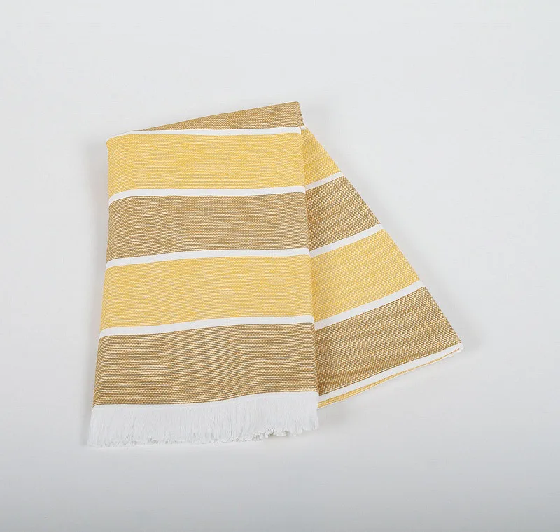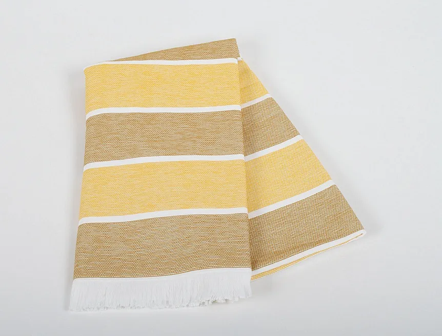 Bavlněná saunová osuška Anika si vás získá moderním designem a hebkým materiálem. Trendy pruhy v odstíhnech medově žluté a medově zlaté protnuté bílým proužkem zpříjemní chvíle aktivního odpočinku. Užijte si saunování i pobyt u vody s tímto praktickým a stylovým doplňkem.