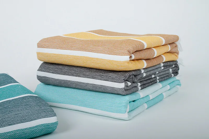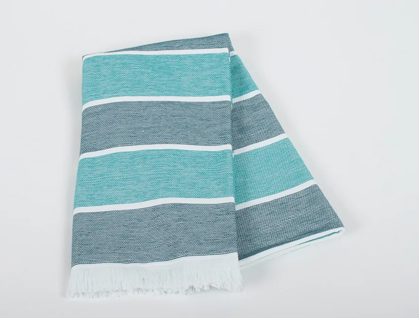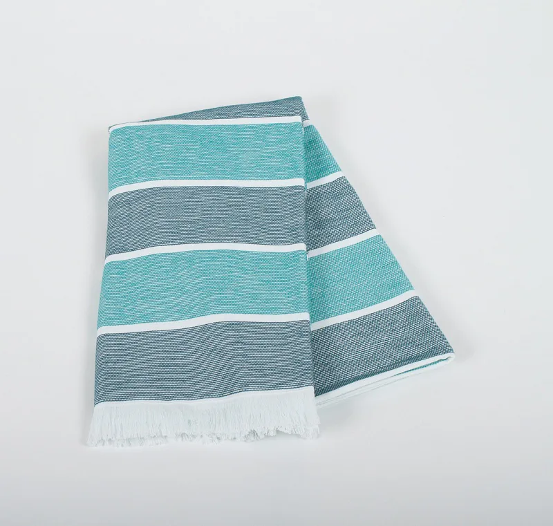 Bavlněná saunová osuška Anika si vás získá moderním designem a hebkým materiálem. Trendy pruhy v odstíhnech petrolejové a svěží azurové protnuté bílým proužkem zpříjemní chvíle aktivního odpočinku. Užijte si saunování i pobyt u vody s tímto praktickým a stylovým doplňkem.