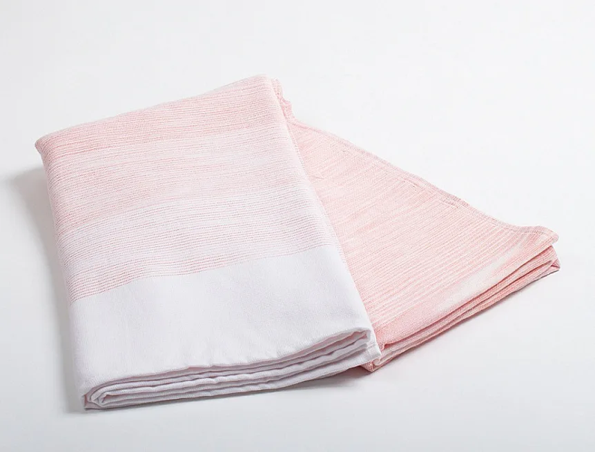 Saunová osuška Granada si vás získá nejen svojí praktičností, ale také jemným designem. Na vrchní hladké straně tvoří vytkané proužky decentní ombré efekt v pastelově oranžovo červených odstínech. Spodní strana osušky je ve znamení hebkého bílého froté, všechny okraje jsou lemované.
