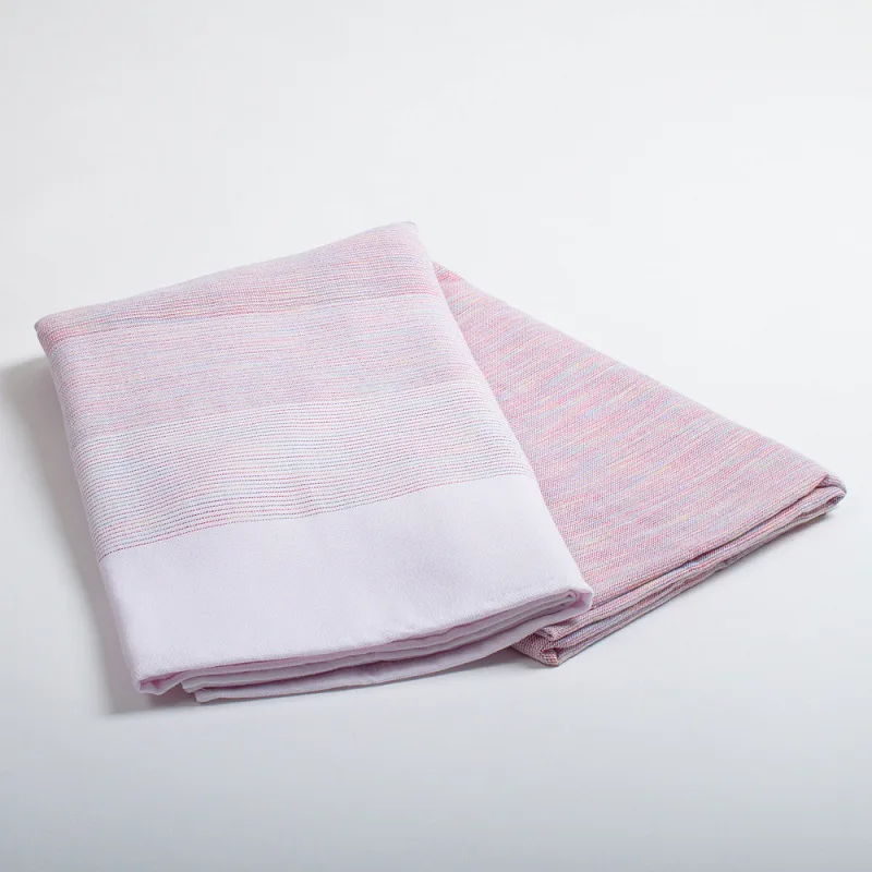 Saunová osuška Granada si vás získá nejen svojí praktičností, ale také jemným designem. Na vrchní hladké straně tvoří vytkané proužky decentní ombré efekt v duhových odstínech. Spodní strana osušky je ve znamení hebkého bílého froté, všechny okraje jsou lemované.