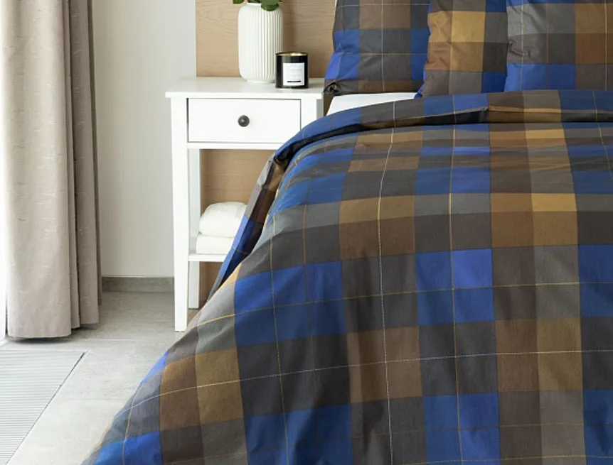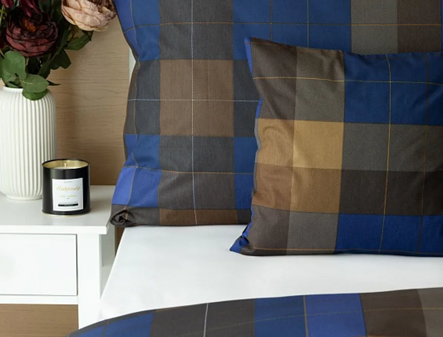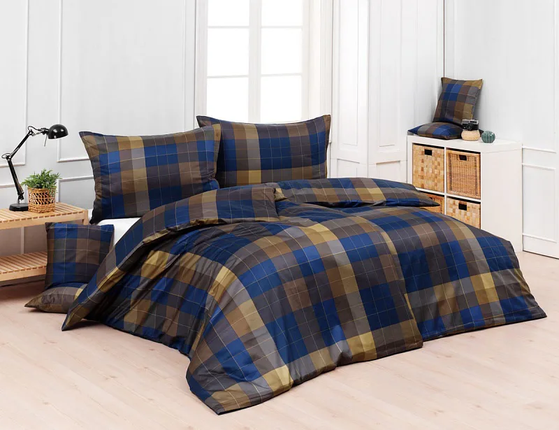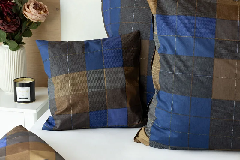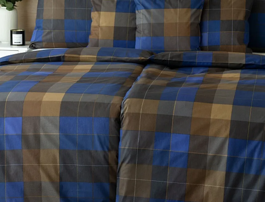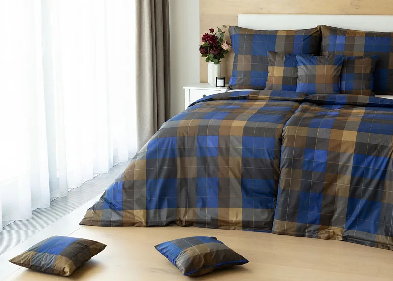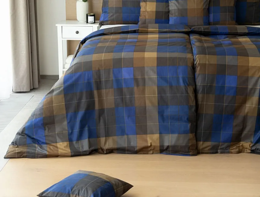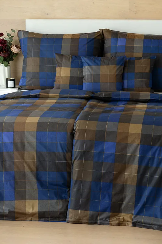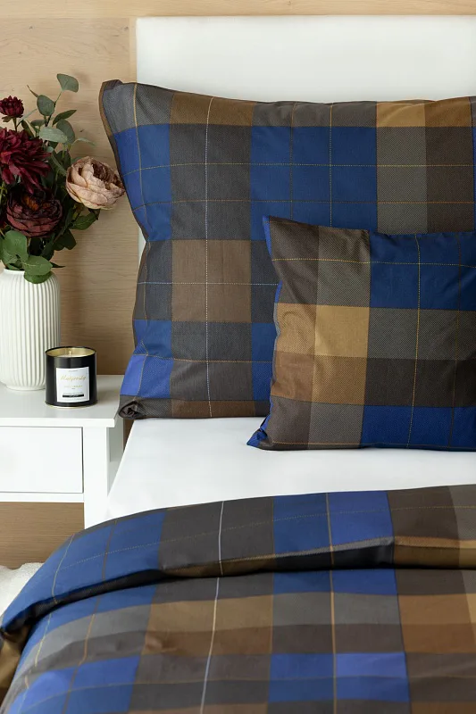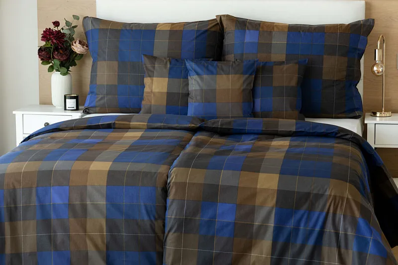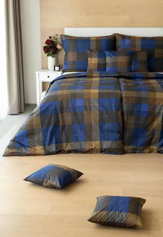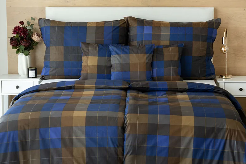 Shelby cotton bed linen must not be missing in your bedding. The timeless checkered pattern in warm brown and dark blue tones creates an eye-catching ensemble that is extremely elegant, practical and suitable for any bedroom.