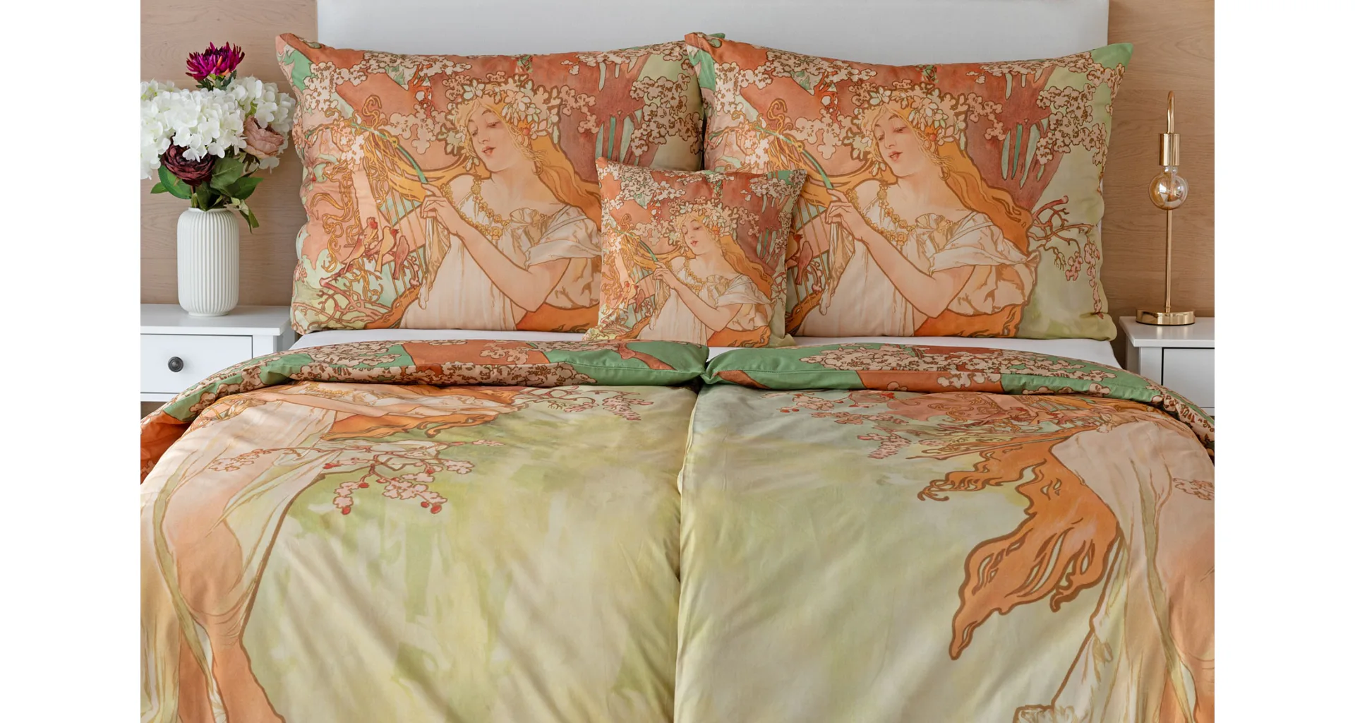 The work of the painter Alfons Mucha, a world-famous representative of Art Nouveau, comes to life in the form of luxury bedding that will bring a romantic atmosphere to your home.