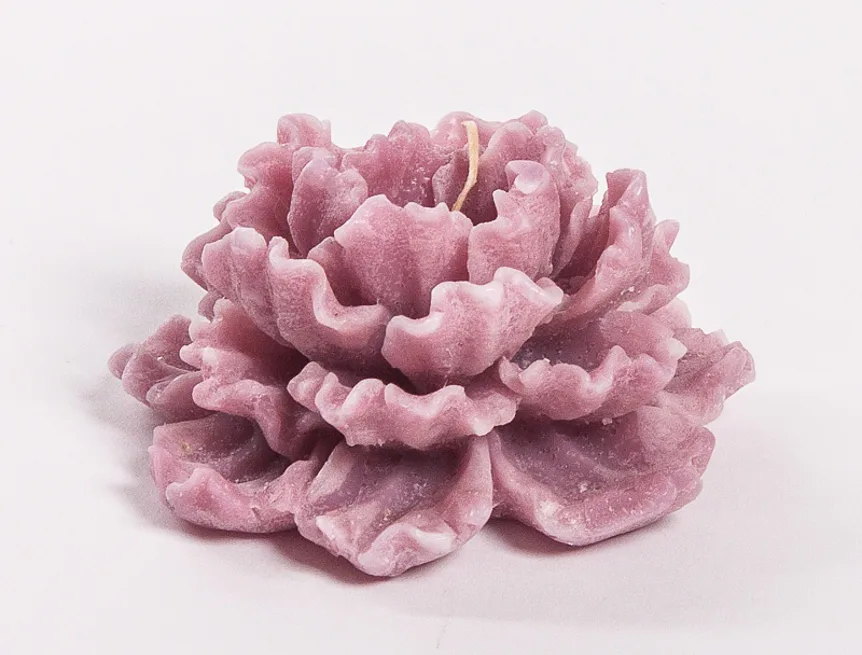 Originální, ručně vyráběná vonná svíčka ve tvaru pivoňkového květu v pastelovém odstínu světle fuchsiové barvy je skvělým tipem na dárek pro každou romantickou duši. Svíčka je dodávána v průhledném dárkovém balení.