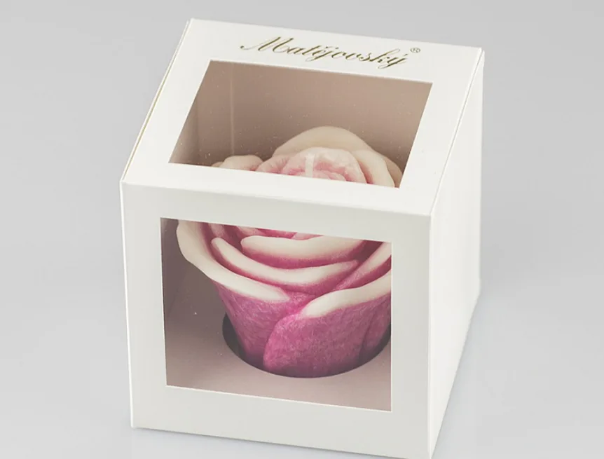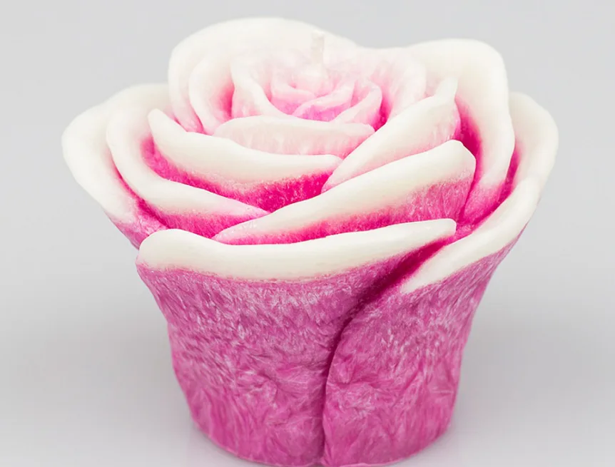 Ručně vyráběná svíčka ve tvaru květu růže v barvě růžové, s jemnou mramorovanou texturou je skvělým tipem na dárek pro každou romantickou duši. Květinová svíčka je vyrobena z kvalitního palmového vosku s jedním bavlněným knotem, odhořívá plynule a nekouří. Originální vzhled svíčky je doplněn sladkou ovocnou vůní, která se uvolňuje hořením.