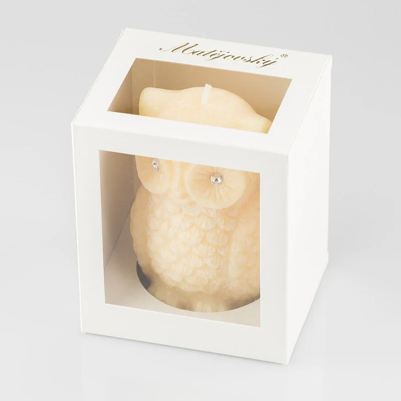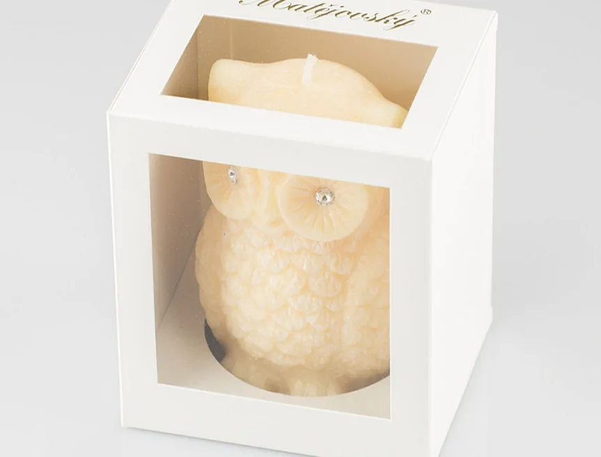 Ručně vyráběná svíčka ve tvaru sovičky v pastelovém odstínu jemné meruňkové barvy s jemnou mramorovanou texturou je skvělým tipem na originální dárek. Svíčka zdobená kamínky Swarovski je vyrobena z kvalitního palmového vosku a má jeden bavlněný knot. Trendy vzhled svíčky je doplněn sladkou ovocnou vůní. Dodáváme v elegantní dárkové krabičce.