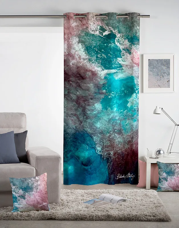 The colours of the drapes and bed linen with the same motive can differ slightly due to the use of different print technology.