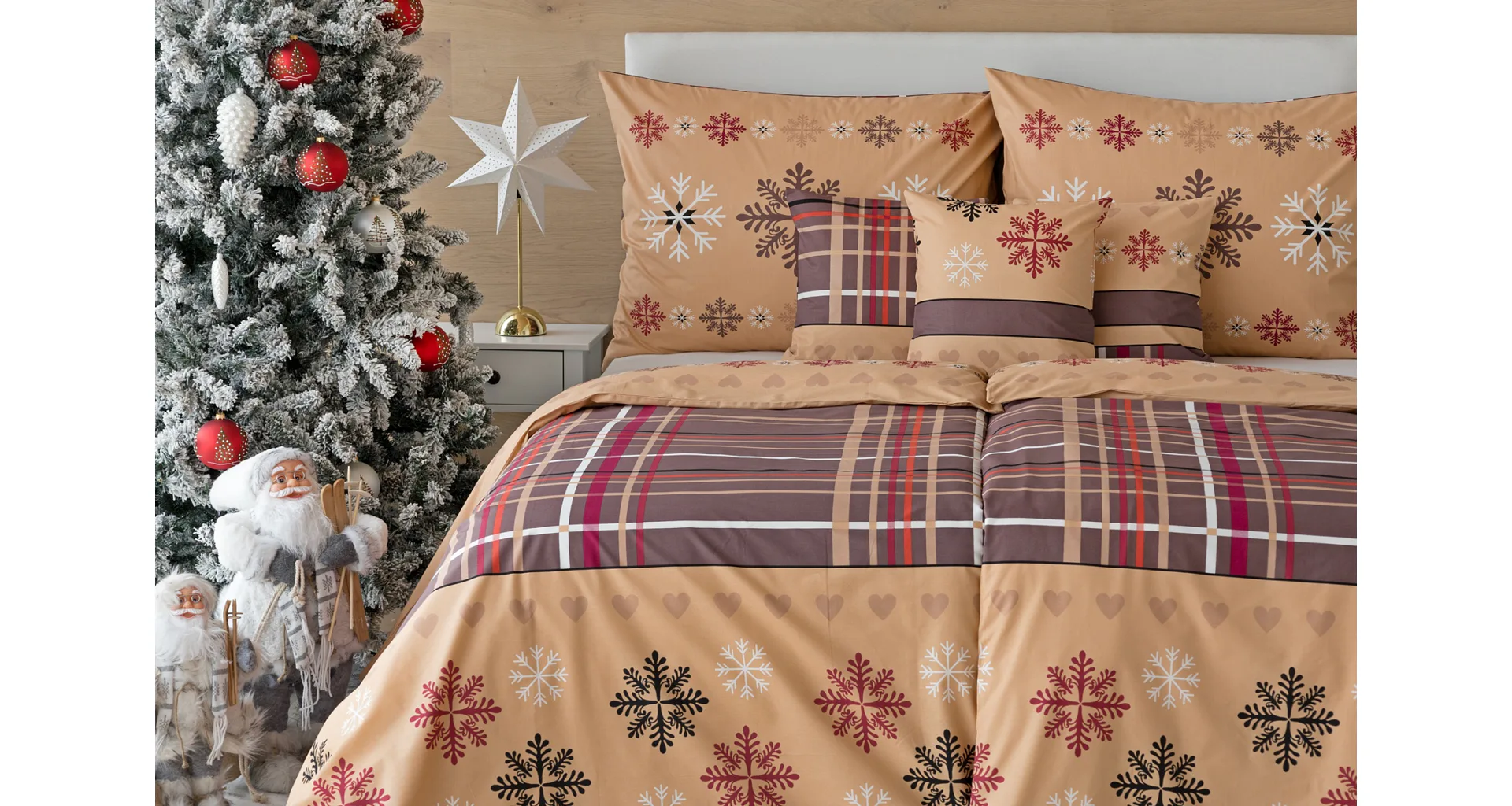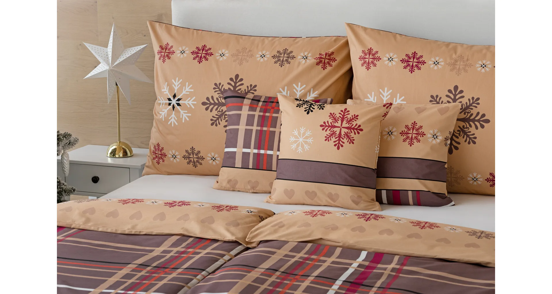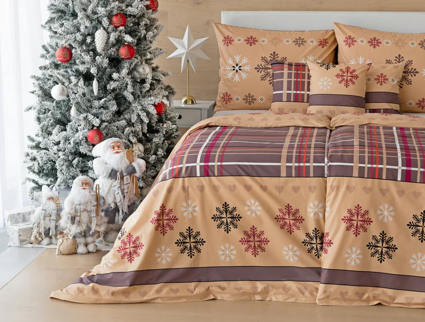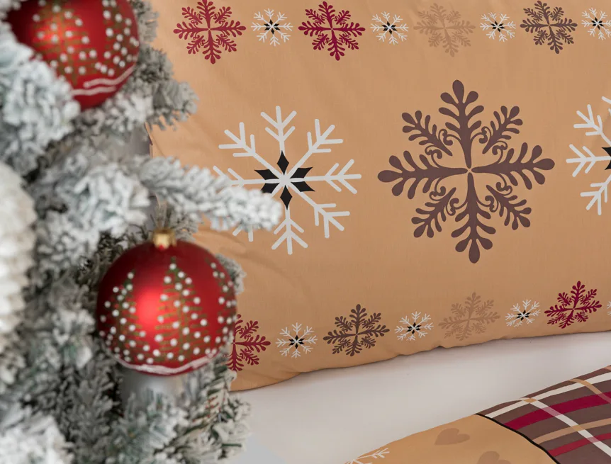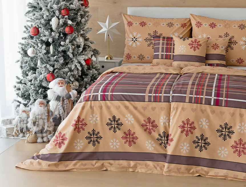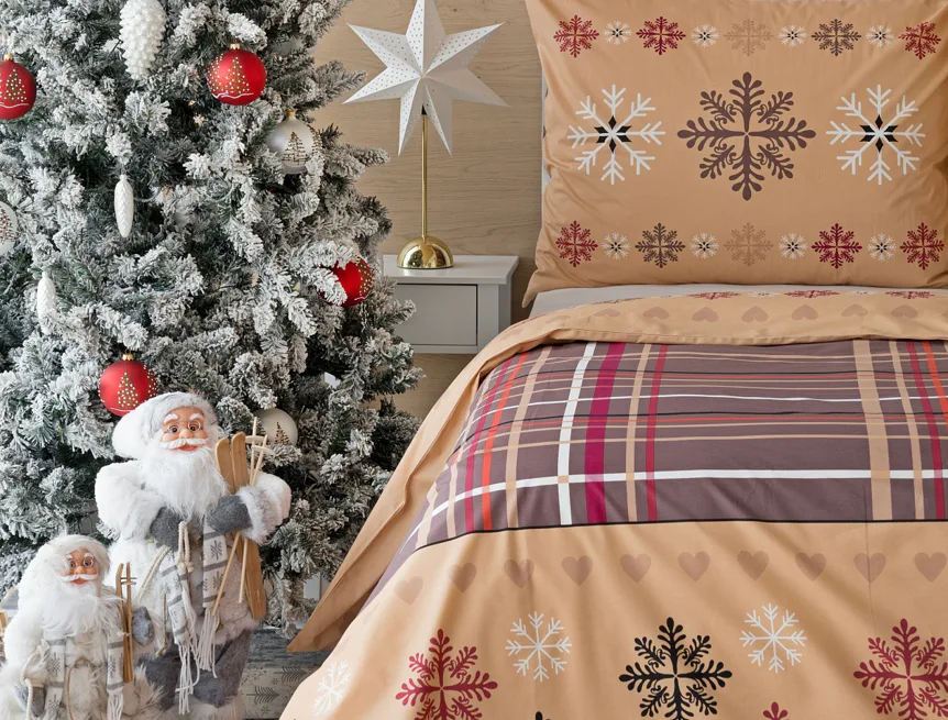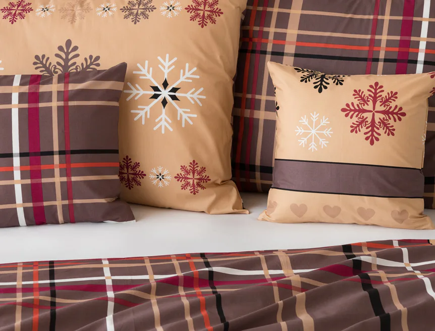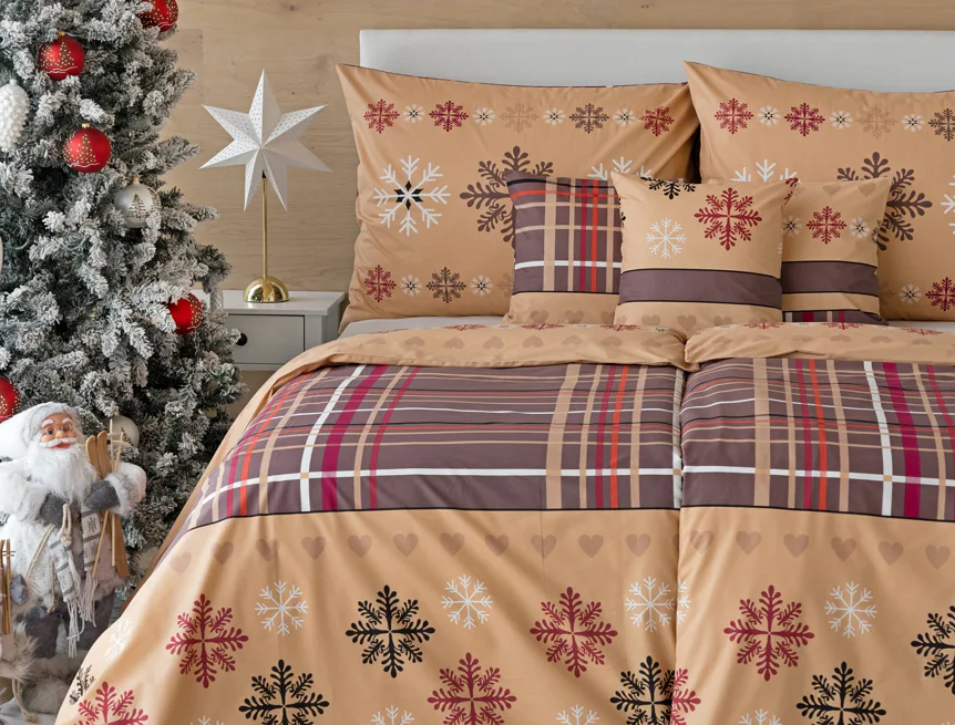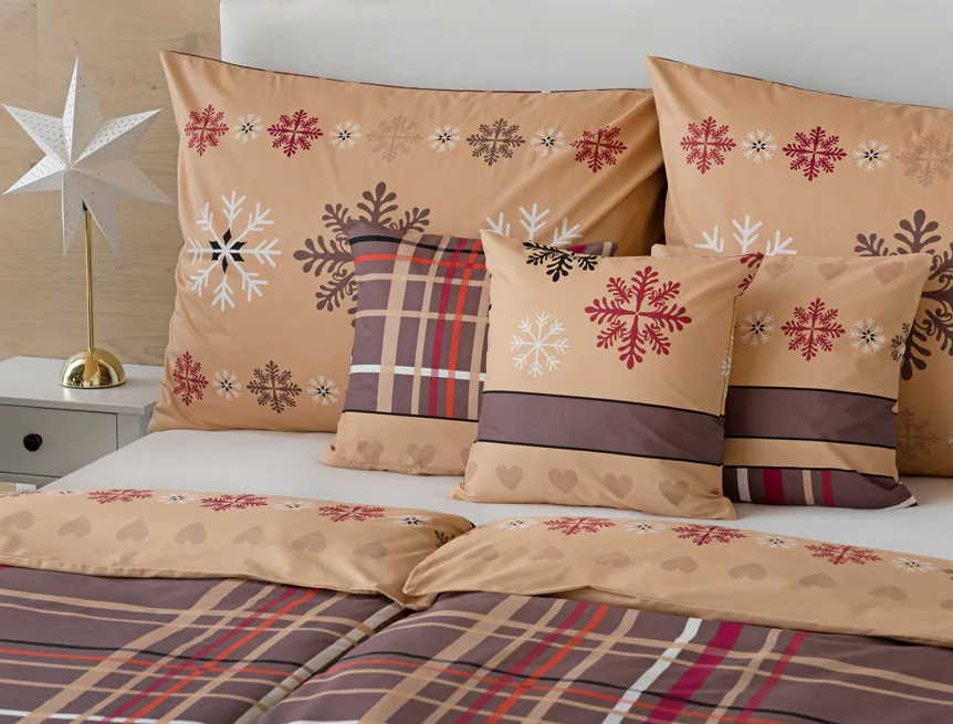 Tinsel bedding brings an attractive Christmas pattern in warm tones of hazelnut and nougat brown. Thanks to the imaginative combination of motifs, you can experiment and enjoy the festive atmosphere every day when making your bed. A luxurious premium flannel made of 100% cotton will ensure you get a comfortable night's sleep.