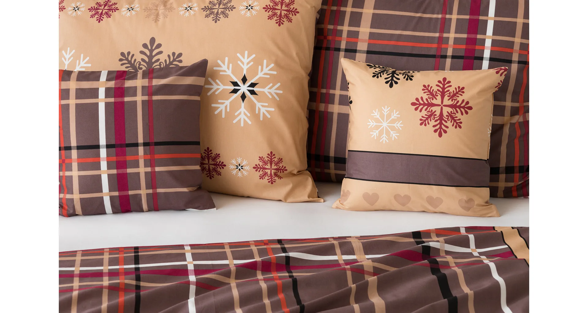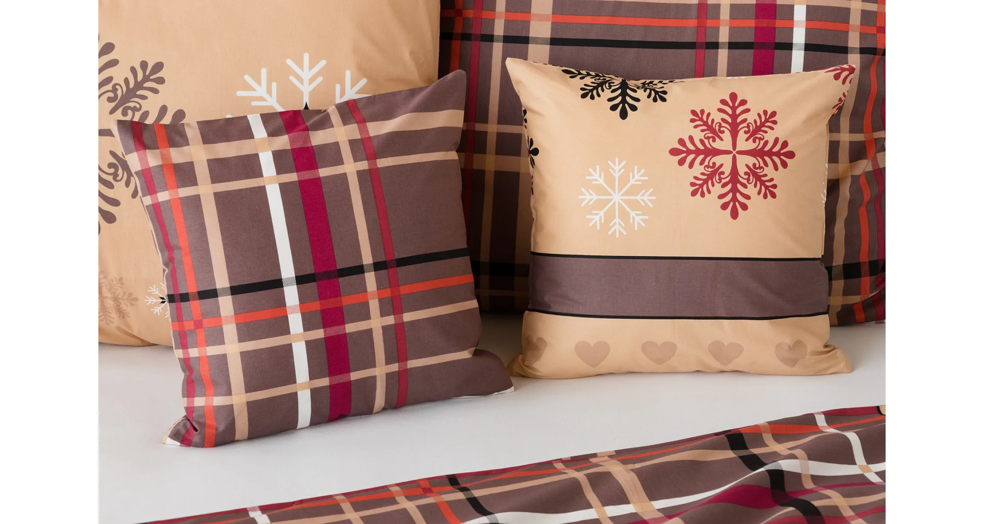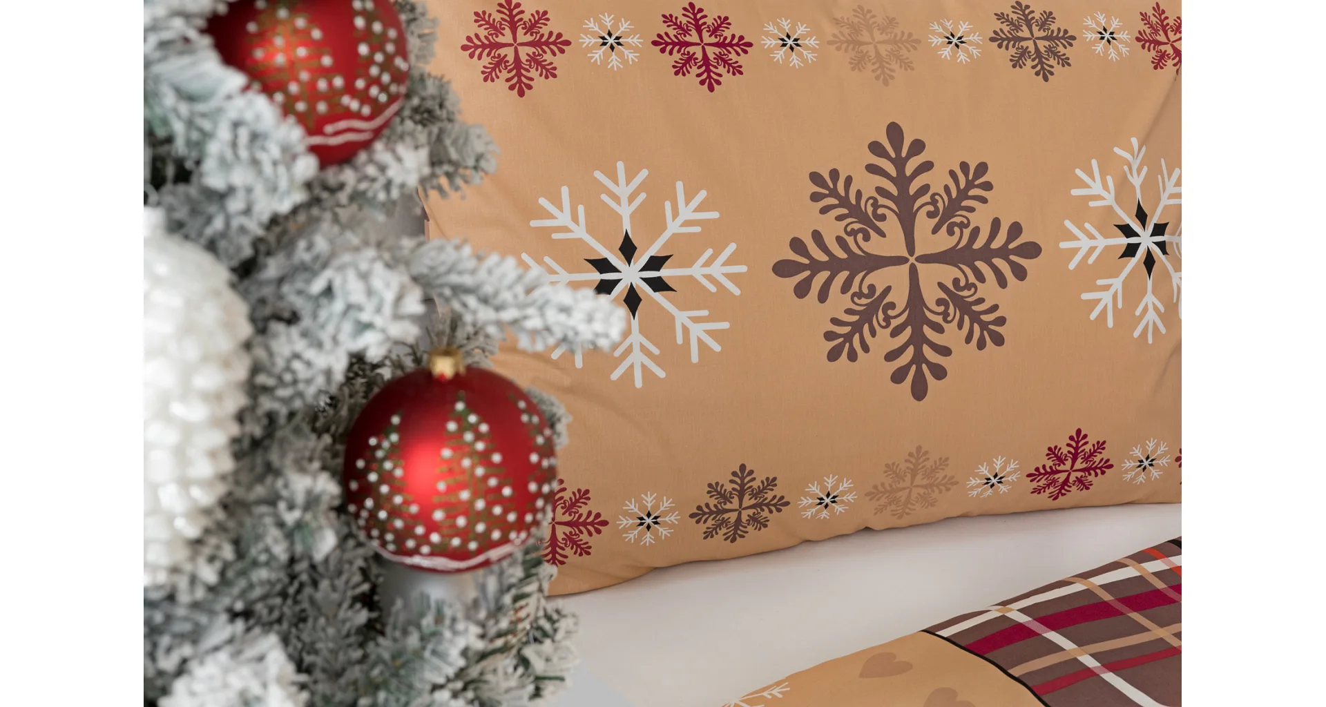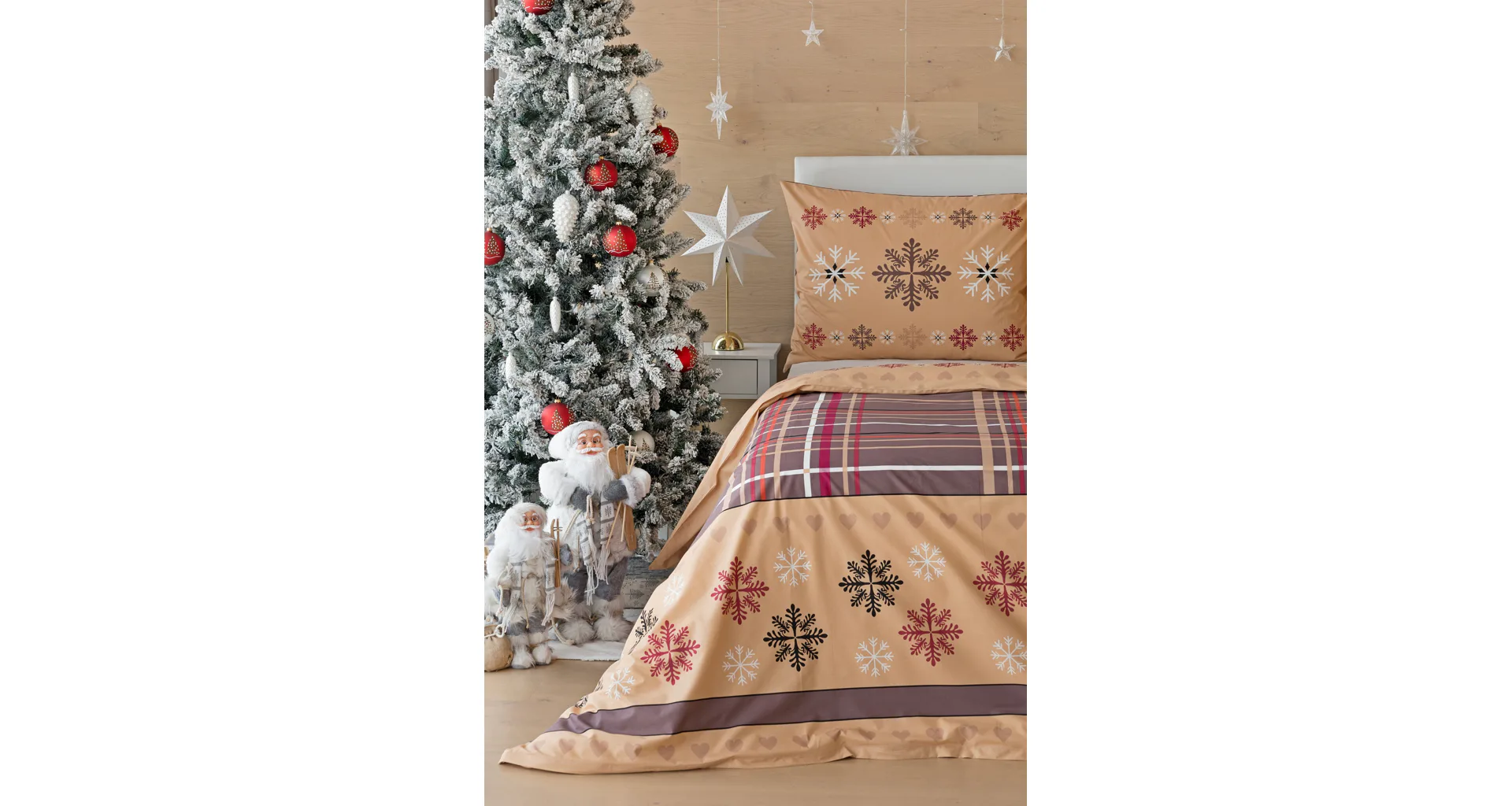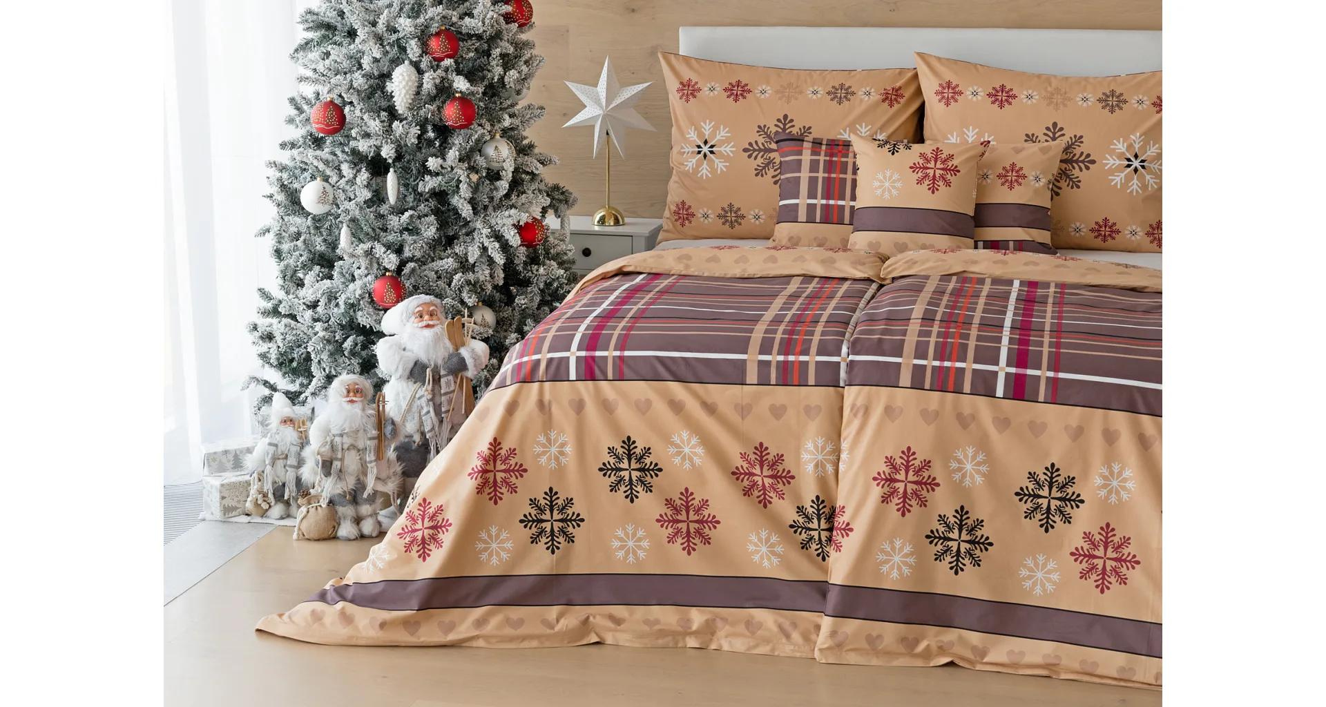 Tinsel bedding brings an attractive Christmas pattern in warm tones of hazelnut and nougat brown. Thanks to the imaginative combination of motifs, you can experiment and enjoy the festive atmosphere every day when making your bed. A luxurious premium flannel made of 100% cotton will ensure you get a comfortable night's sleep.