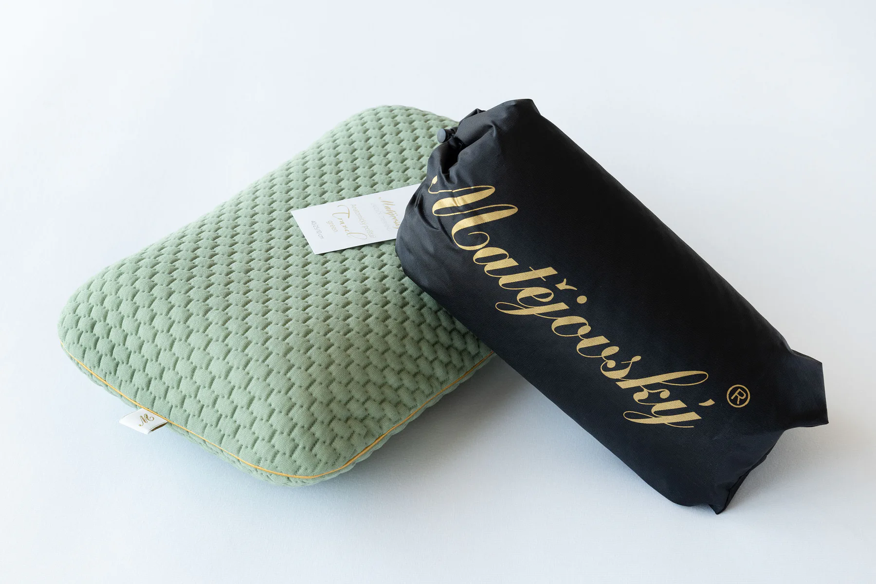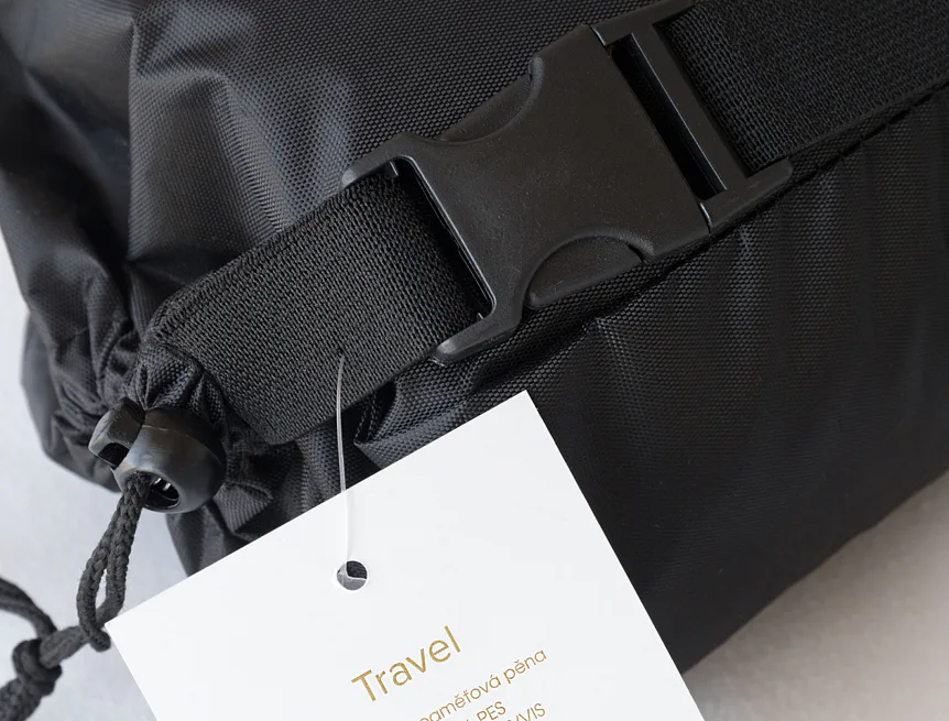 Balení: Anatomický polštář je balený v praktickém cestovním sáčku černé barvy s logem Matějovský.