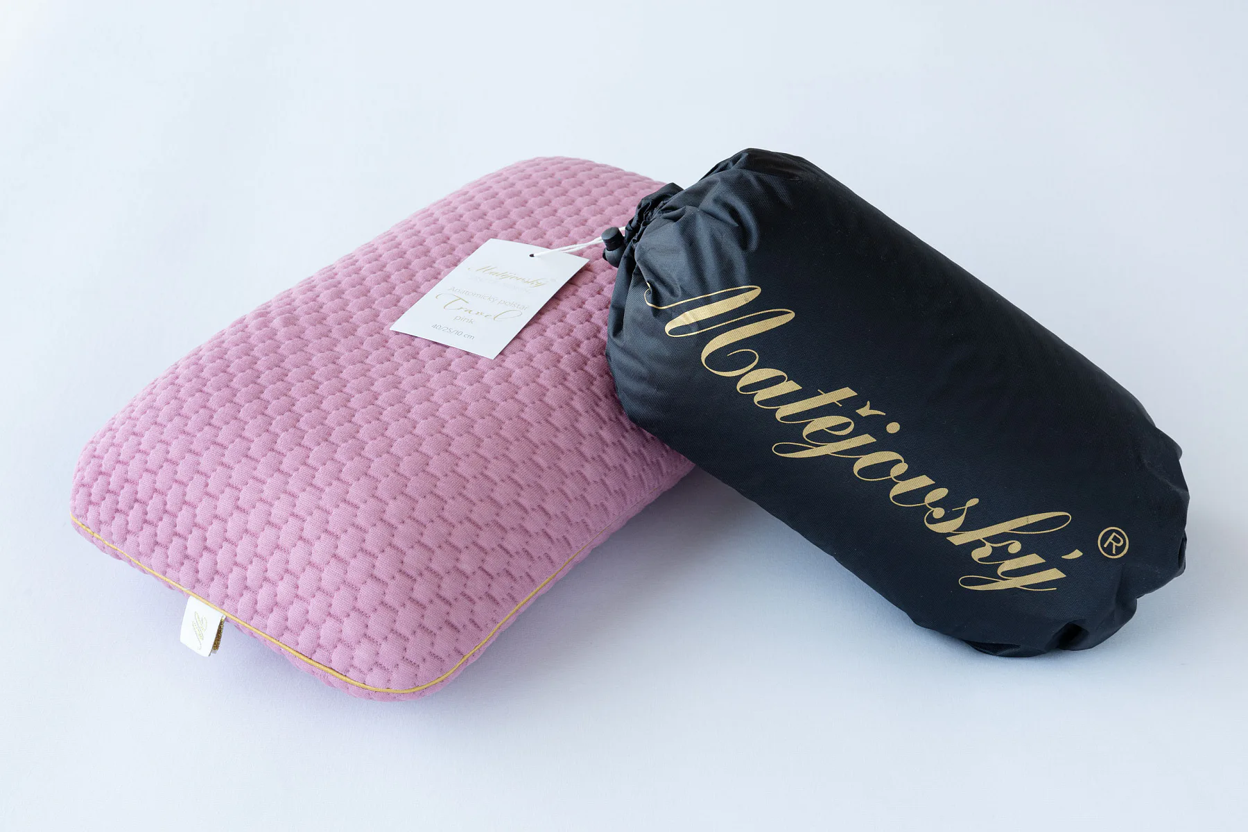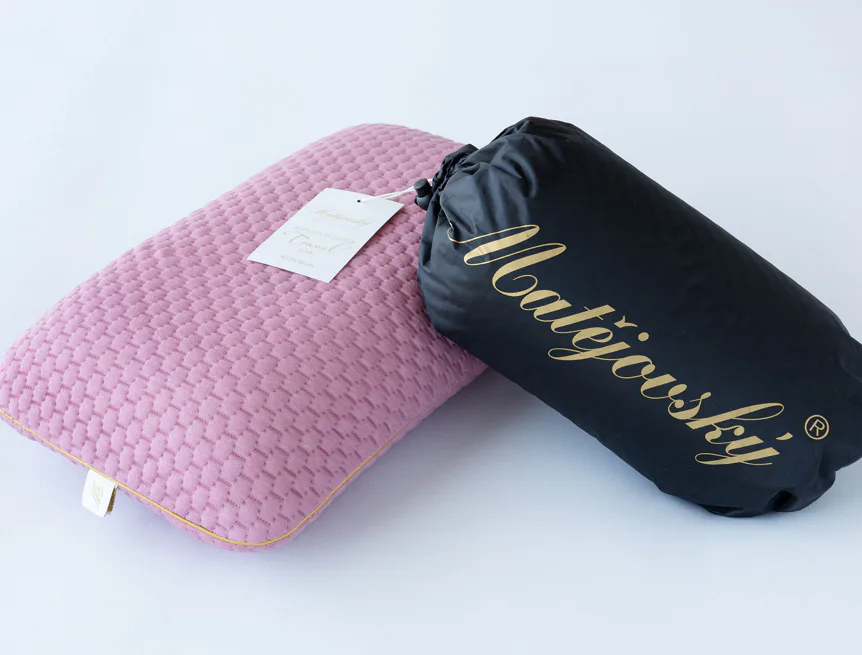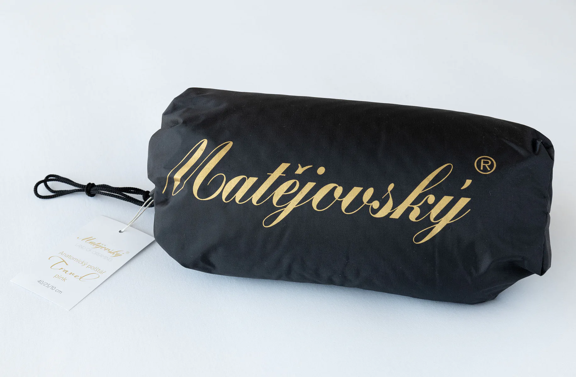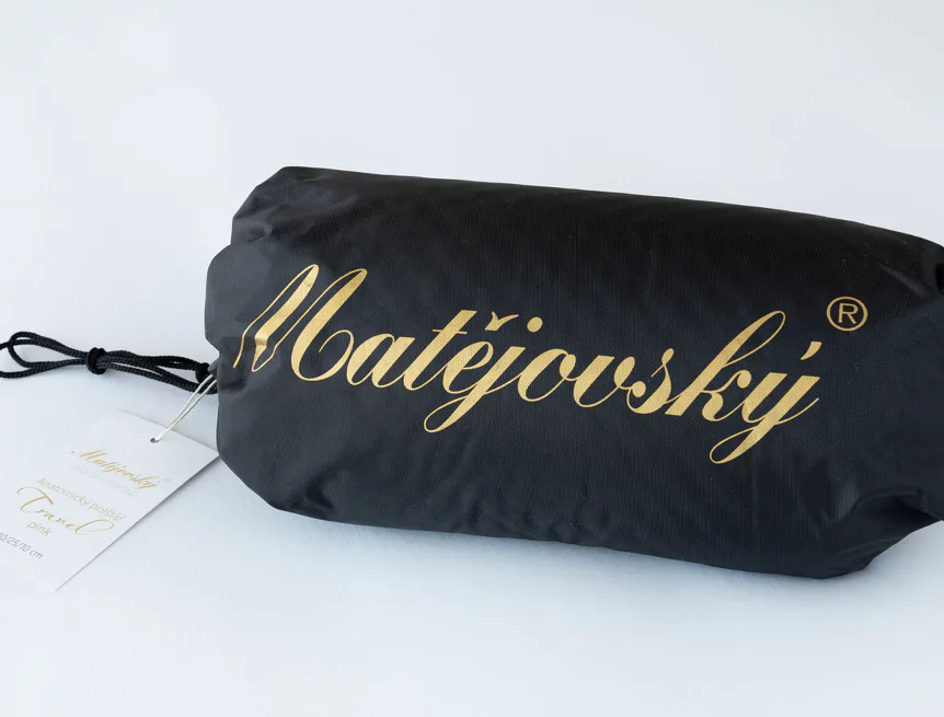 Balení: Anatomický polštář je balený v praktickém cestovním sáčku černé barvy s logem Matějovský.