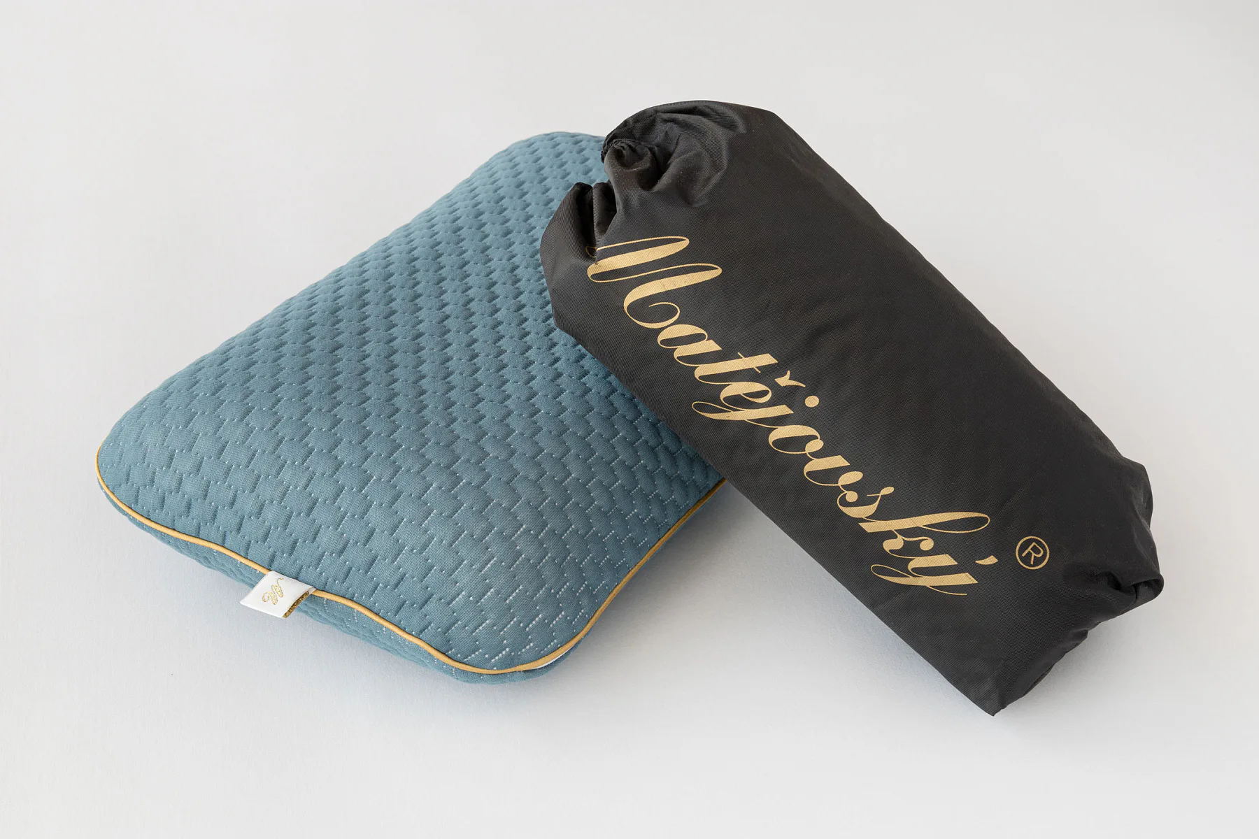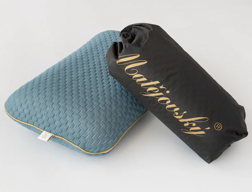 Balení: Anatomický polštář je balený v praktickém cestovním sáčku černé barvy s logem Matějovský.