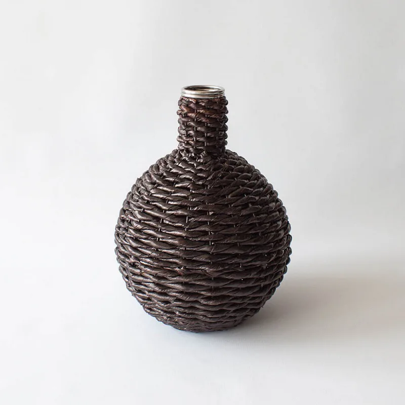 Krásná proutěná váza ozdobí jak klasický, tak moderní interiér. Váza má tmavě hnědou lesklou barvu, hrdlo je lemováno kovovým kroužkem.