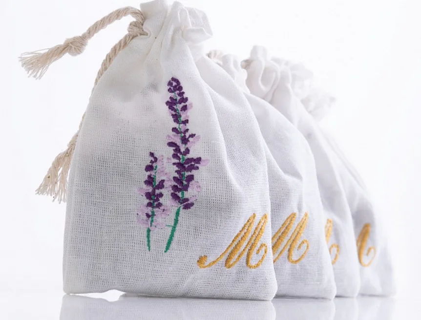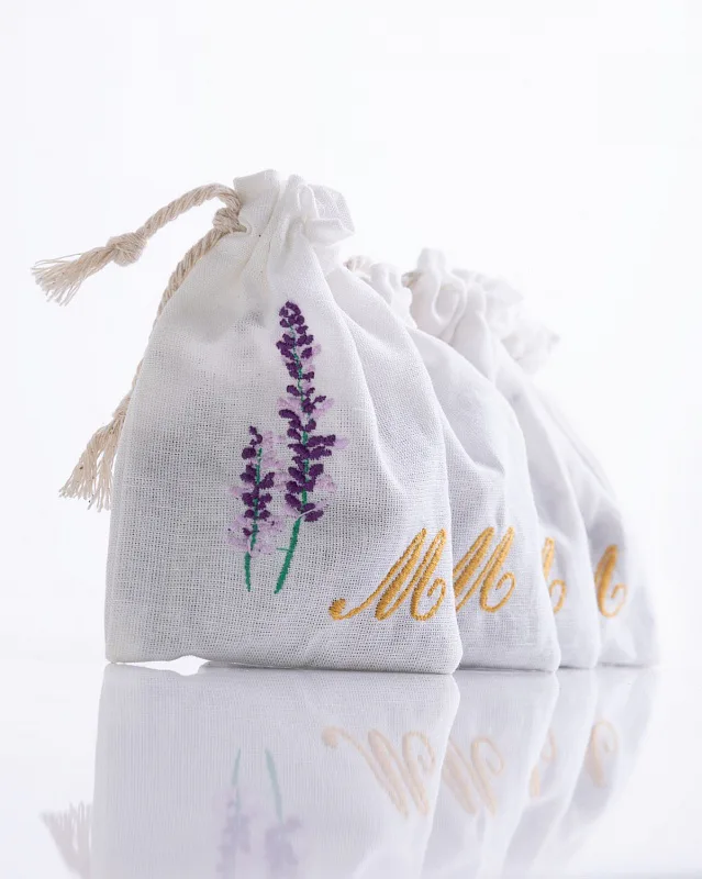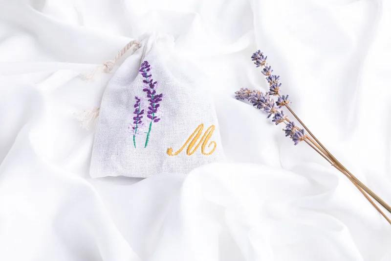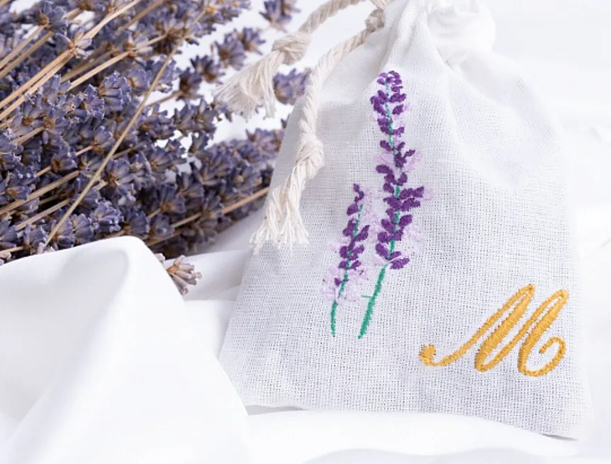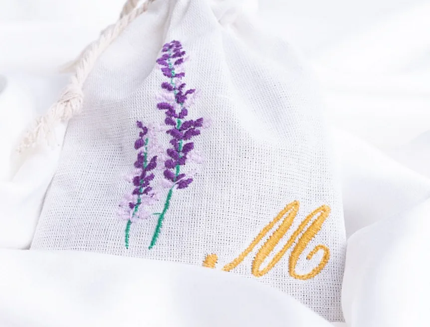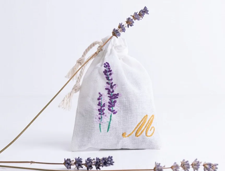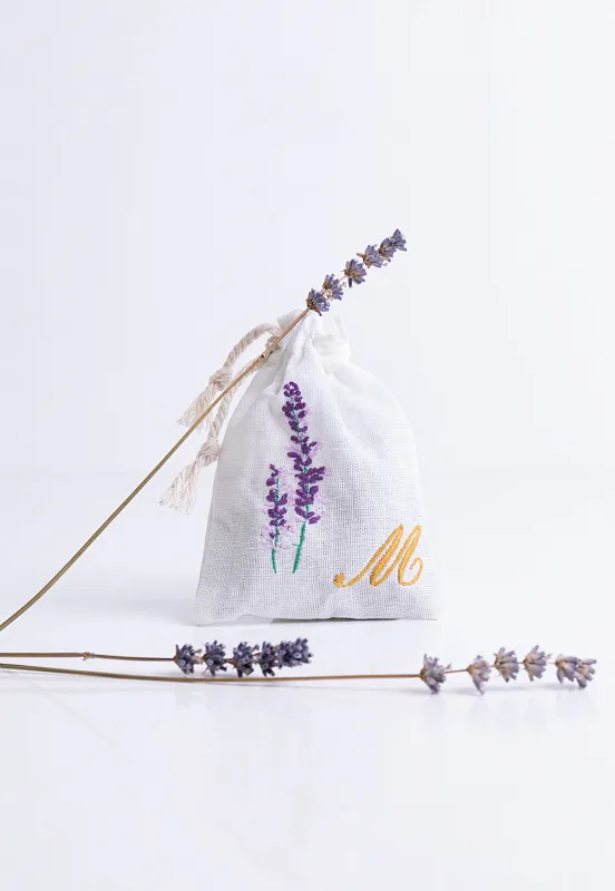 Levandulový sáček, který potěší také jako milý a praktický dárek, zdobí decentní výšivka.
