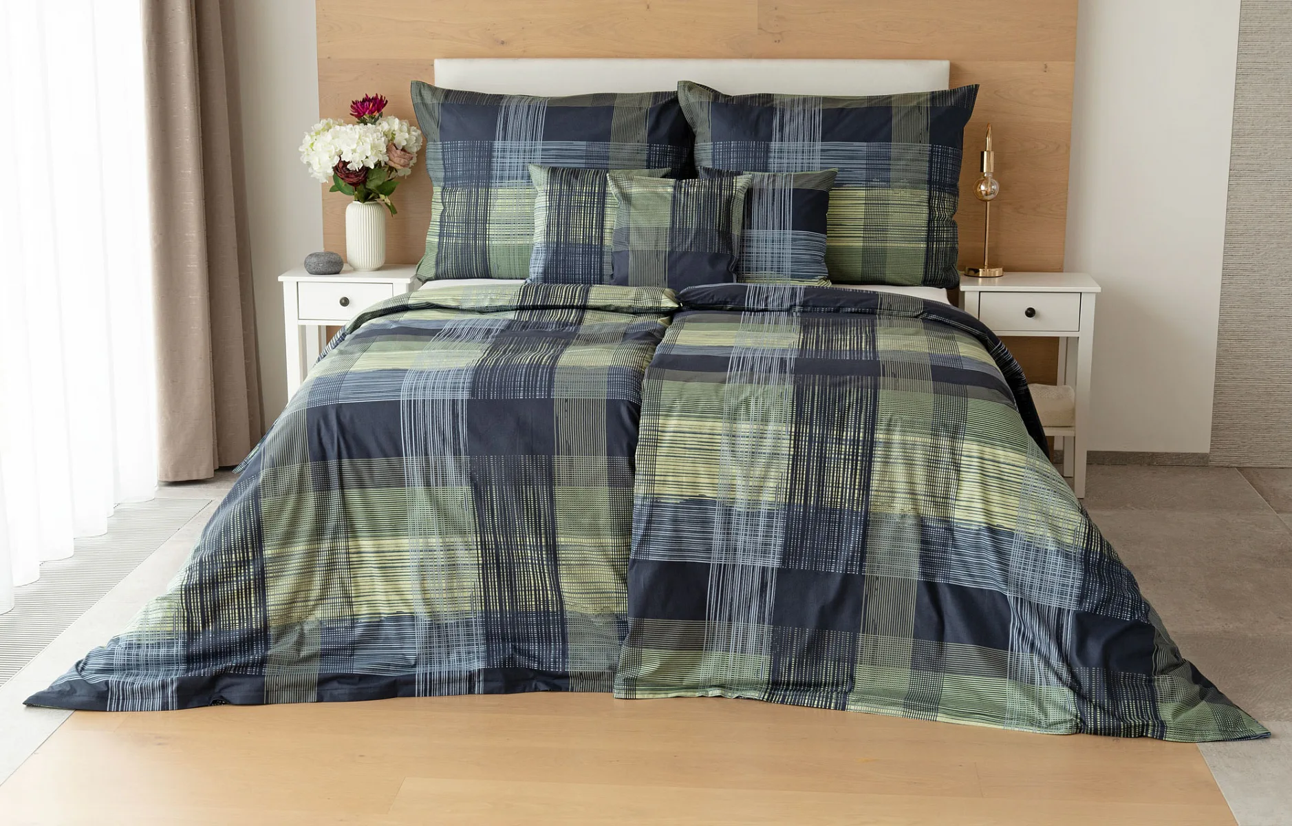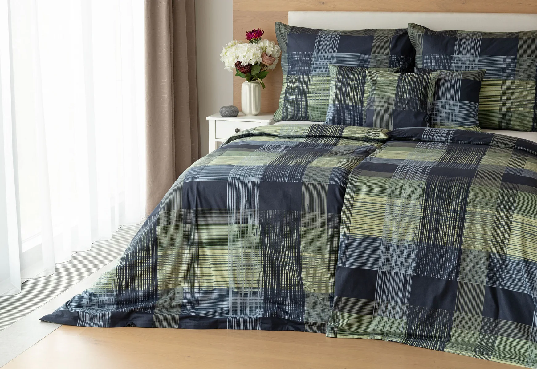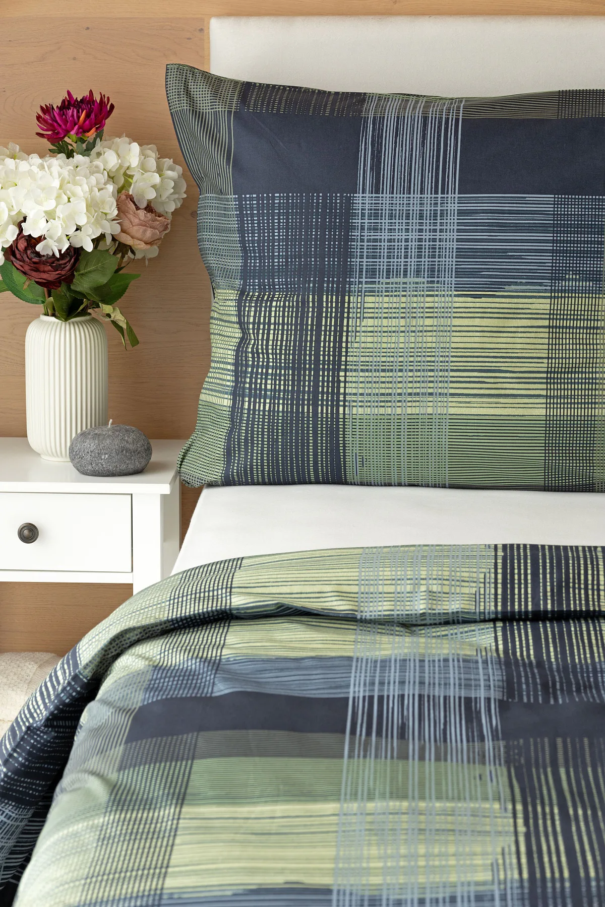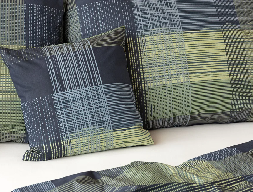 Wilson cotton bedding brings the perfect combination of colors in an elegant pattern. The resulting checkered motif formed by fine stripes combines a diverse range of pistachio green, blue and anthracite tones.