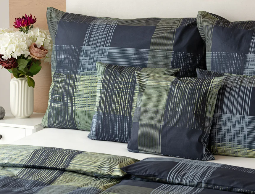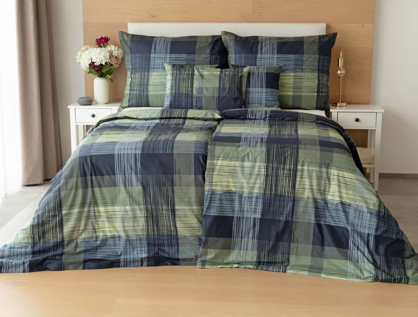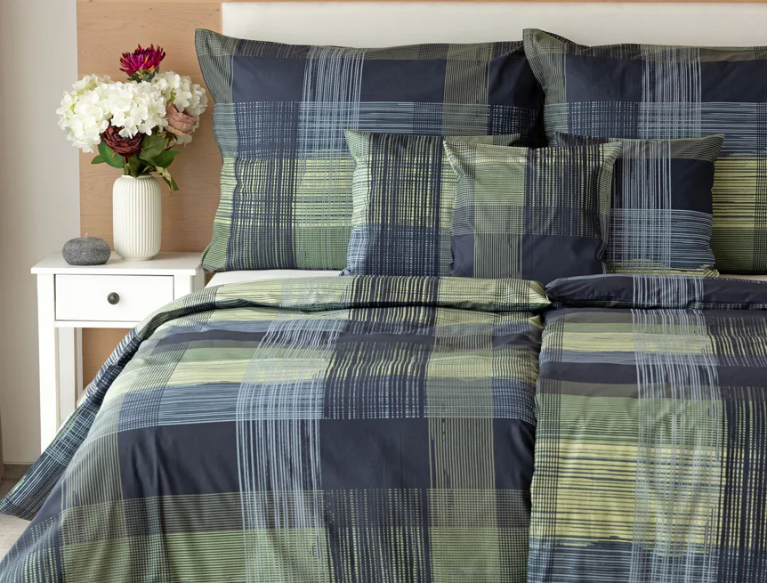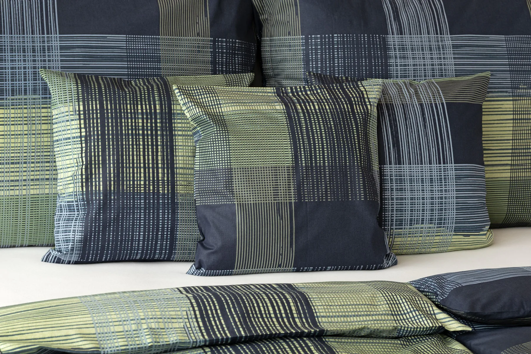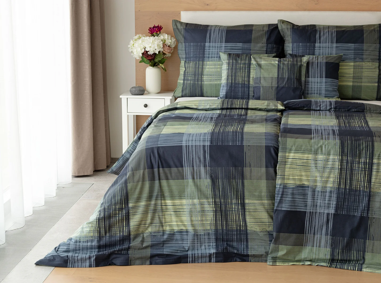 Wilson cotton bedding brings the perfect combination of colors in an elegant pattern. The resulting checkered motif formed by fine stripes combines a diverse range of pistachio green, blue and anthracite tones.