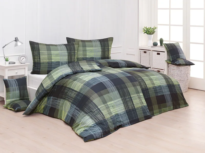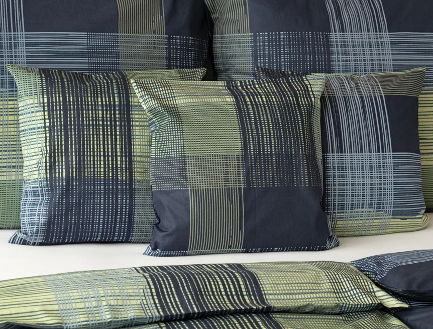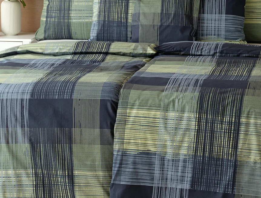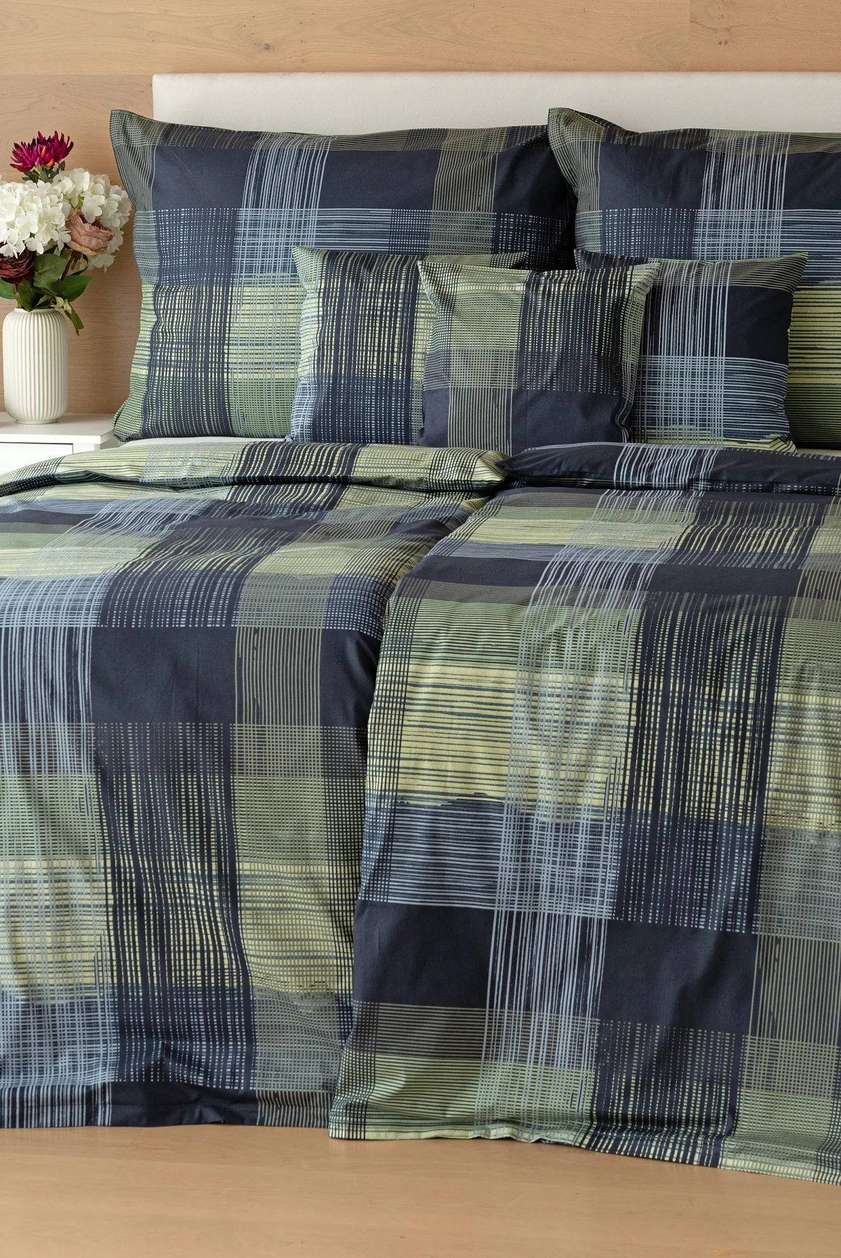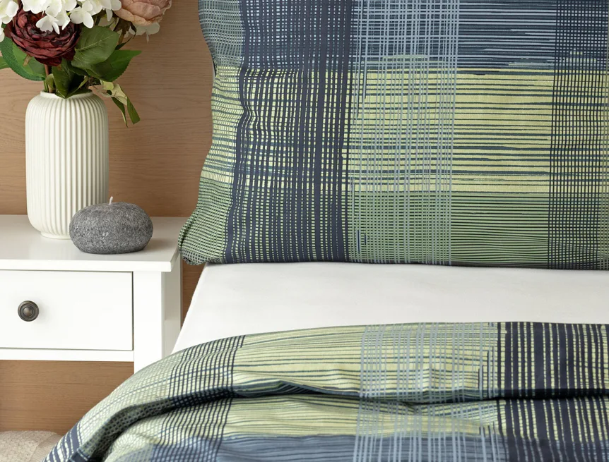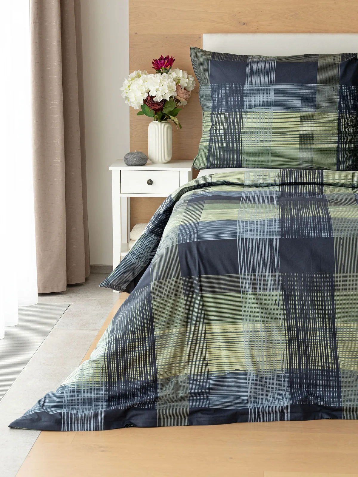 Wilson cotton bedding brings the perfect combination of colors in an elegant pattern. The resulting checkered motif formed by fine stripes combines a diverse range of pistachio green, blue and anthracite tones.