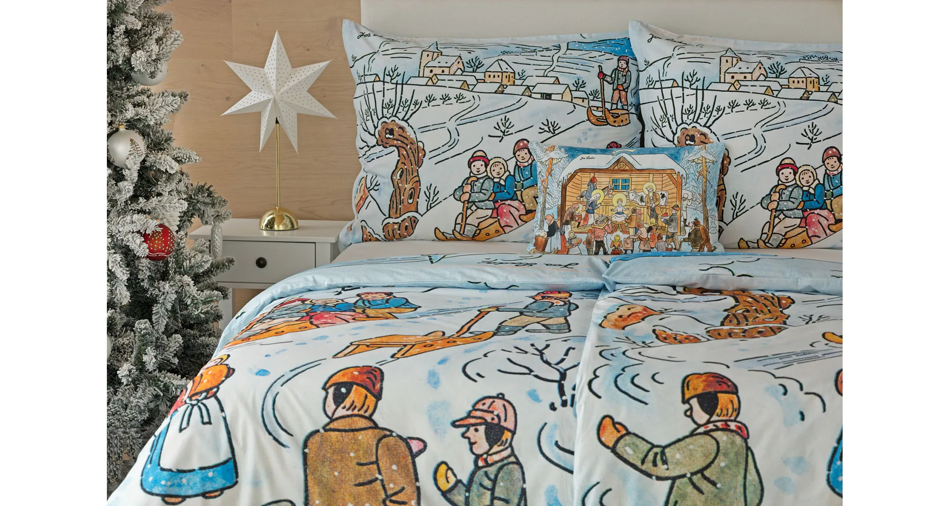 Josef Lada´s lovely drawings bring back the memories of carefree childhood and fairy tale like winter full of snow, traditions, games and happiness.Create such a magic atmosphere at your home using our cotton bed linen Winter.