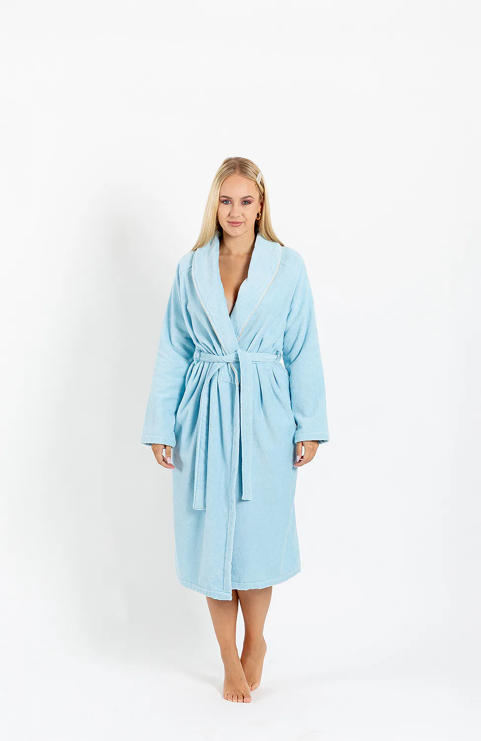 Župany jsou vyrobeny ze 100% prvotřídní bavlněné příze, povrchovou úpravu tvoří hebké velurové froté. Přírodní materiál je zárukou jedinečného komfortu, precizní zpracování zaručí dlouhou životnost výrobku. Elegantní vzhled celé kolekce podtrhují jemné pastelové barvy doplněné v čelním lemu zlatavou paspulí.