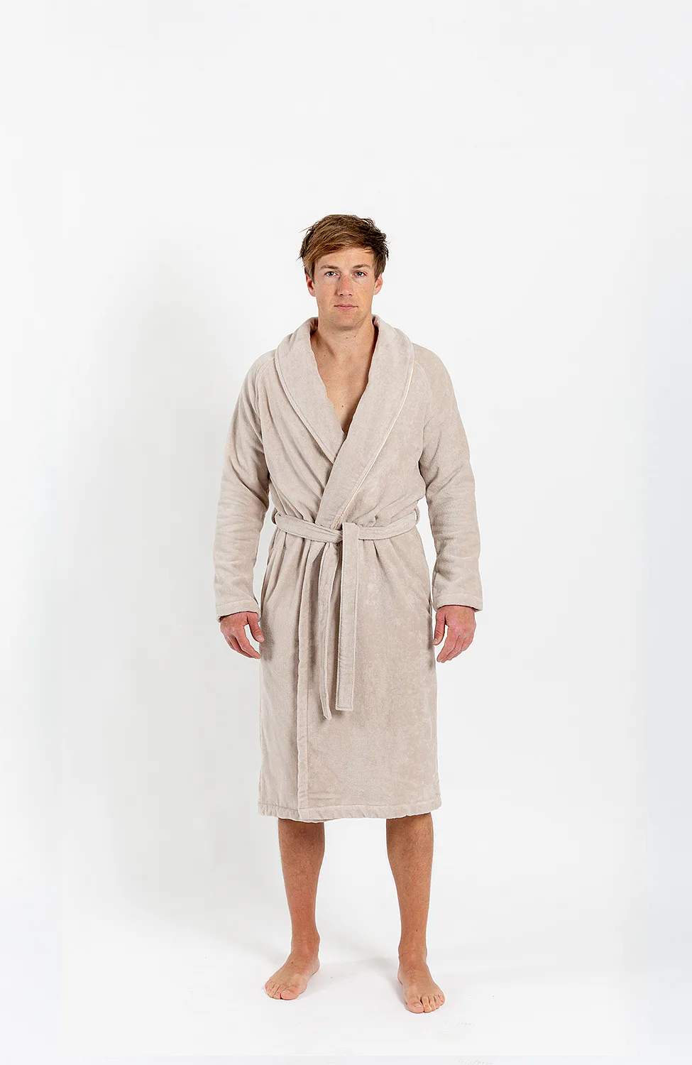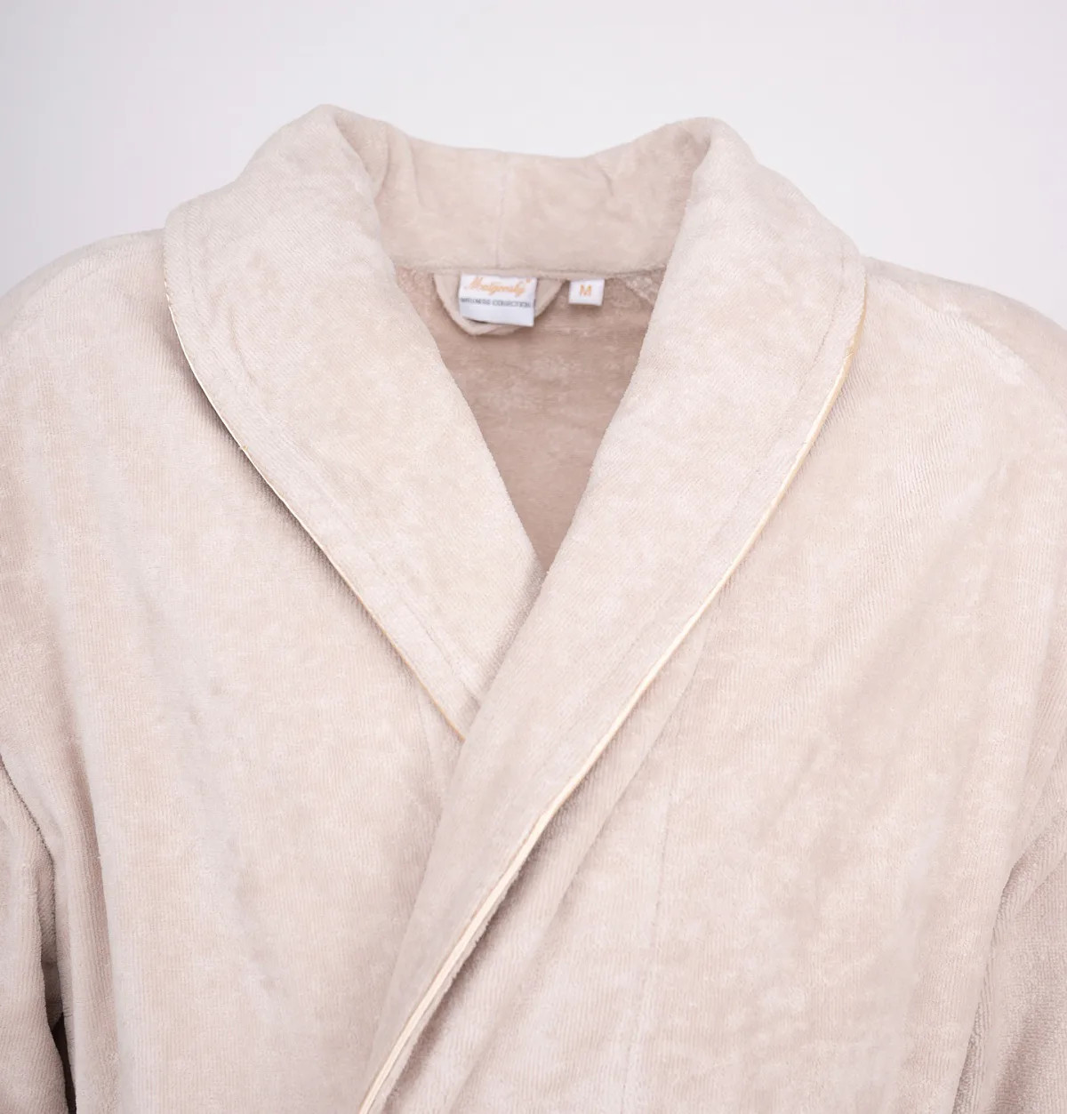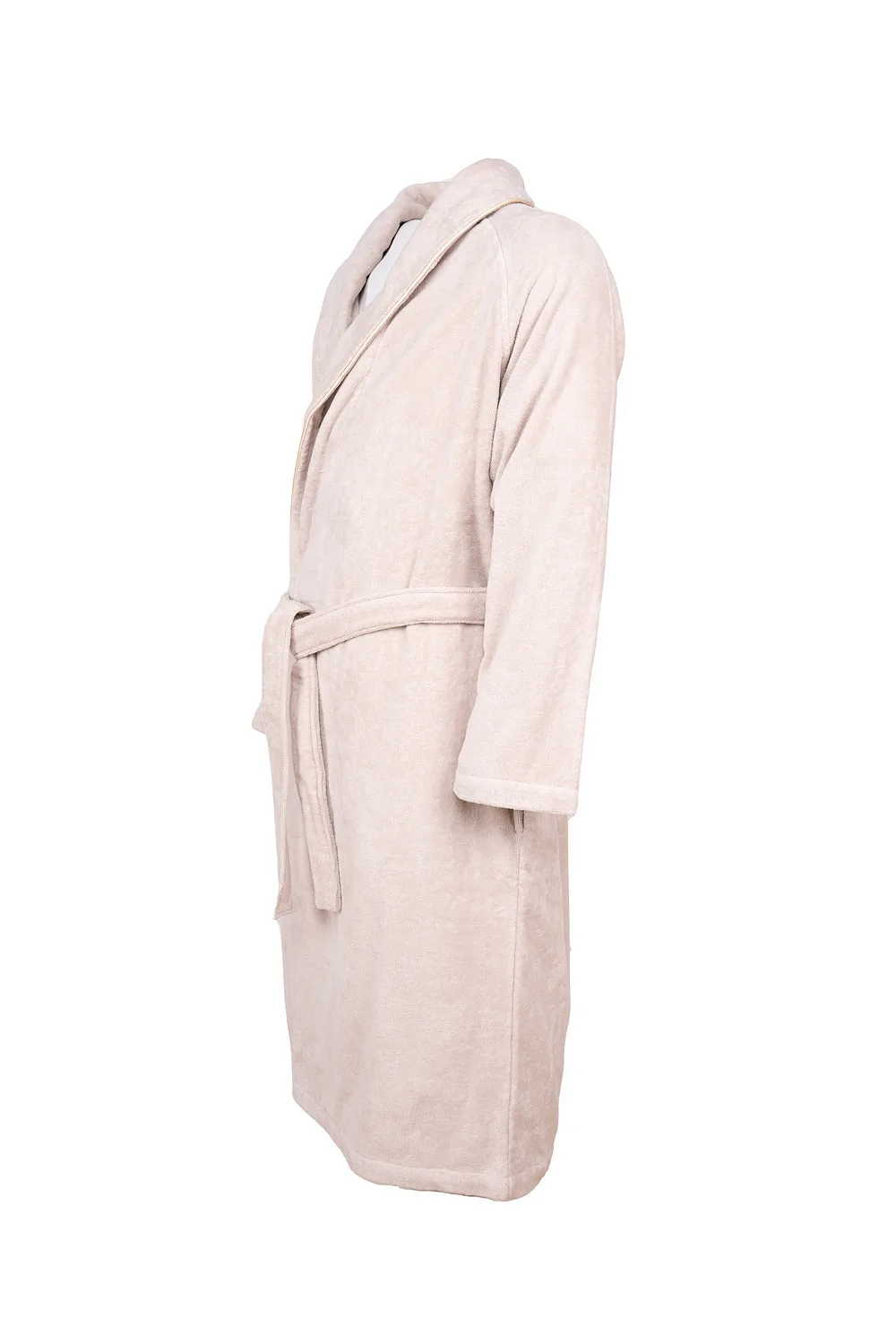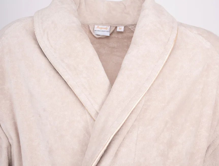 Župany jsou vyrobeny ze 100% prvotřídní bavlněné příze, povrchovou úpravu tvoří hebké velurové froté. Přírodní materiál je zárukou jedinečného komfortu, precizní zpracování zaručí dlouhou životnost výrobku. Elegantní vzhled celé kolekce podtrhují jemné pastelové barvy doplněné v čelním lemu zlatavou paspulí.