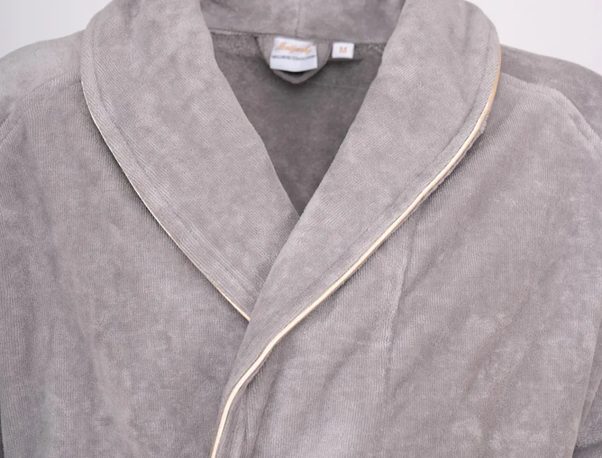 Župany jsou vyrobeny ze 100% prvotřídní bavlněné příze, povrchovou úpravu tvoří hebké smyčkové froté. Přírodní materiál je zárukou jedinečného komfortu, precizní zpracování zaručí dlouhou životnost výrobku. Elegantní vzhled celé kolekce podtrhují jemné pastelové barvy doplněné v čelním lemu zlatavou paspulí.