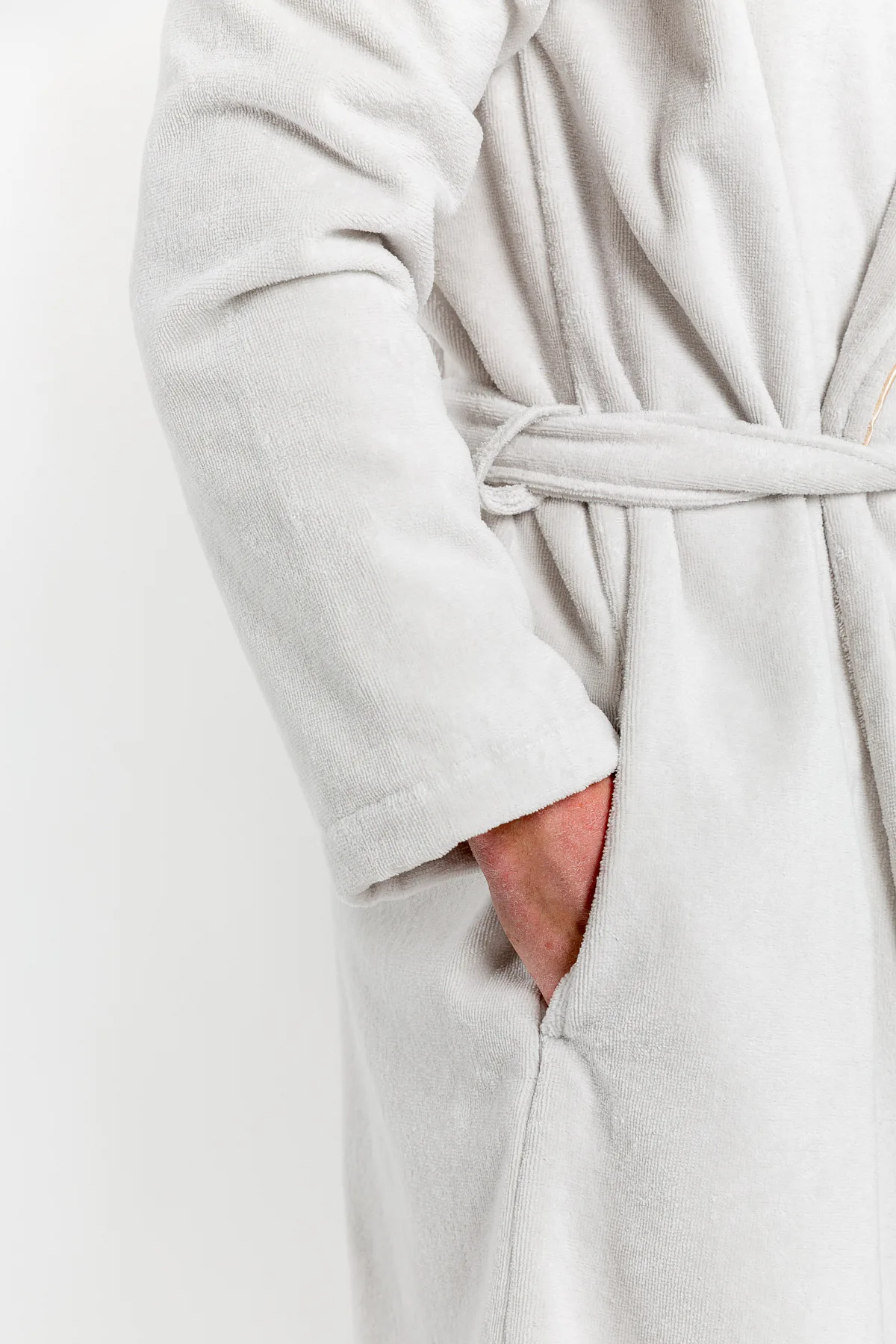 Župany jsou vyrobeny ze 100% prvotřídní bavlněné příze, povrchovou úpravu tvoří hebké velurové froté. Přírodní materiál je zárukou jedinečného komfortu, precizní zpracování zaručí dlouhou životnost výrobku. Elegantní vzhled celé kolekce podtrhují jemné pastelové barvy doplněné v čelním lemu zlatavou paspulí.